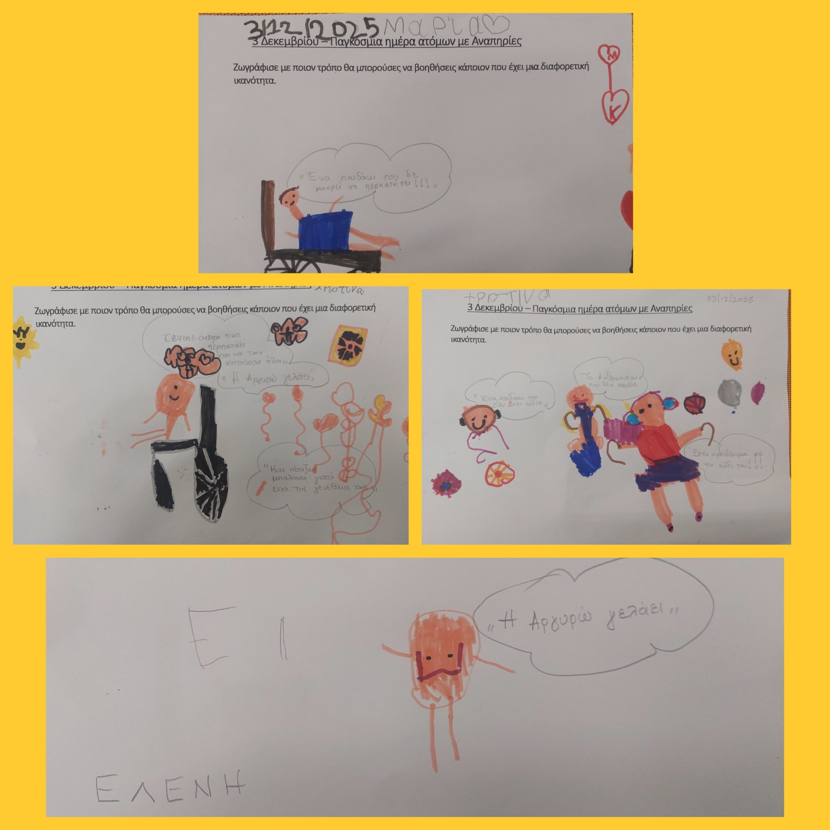 Με αφορμή την Παγκόσμια Ημέρα Ατόμων με Αναπηρία, οι μαθητές του σχολείου μας συμμετείχαν σε μια όμορφη και ουσιαστική δράση ευαισθητοποίησης.