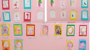 - Τα παιδιά ζωγράφισαν τον εαυτό τους και έγραψαν το όνομά τους με μαρκαδόρους. Ζωγράφισαν και τα πορτρέτα τους με λαδοπαστέλ και νερομπογιές.