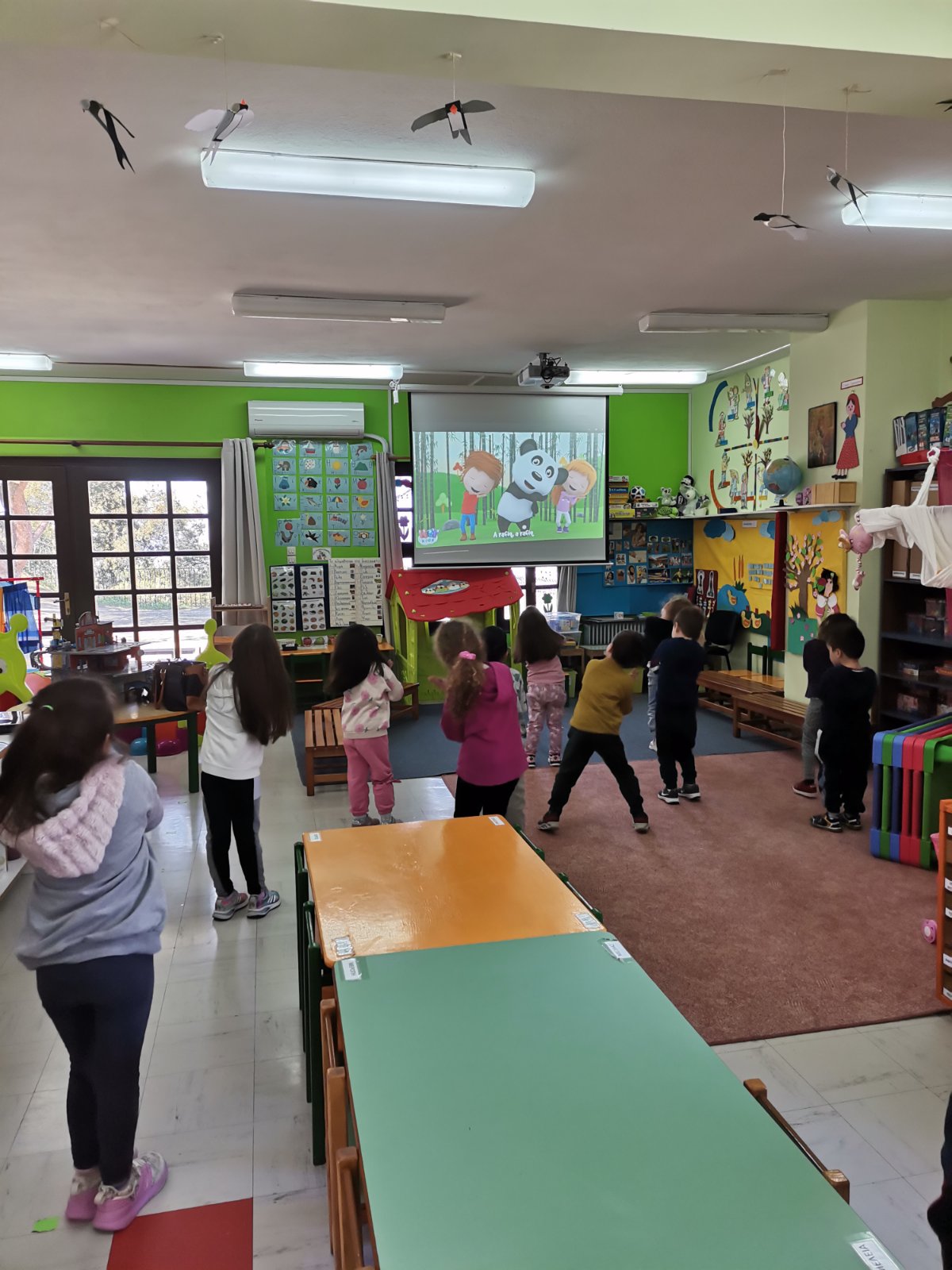Μίλησε στα παιδιά για την υγιεινή διατροφή δείωνοντάς τους εικόνες και βίντεο.