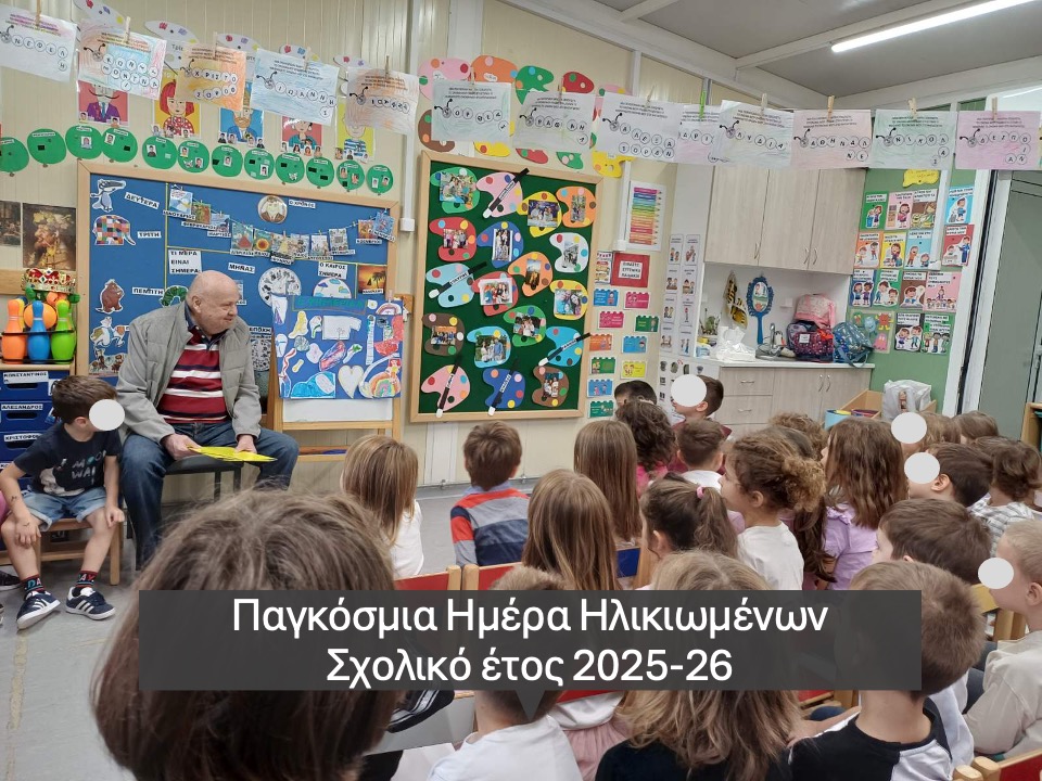 Με αφορμή τον εορτασμό της Παγκόσμιας Ημέρας Τρίτης Ηλικίας, την 1η Οκτώβρη 2025, οι μικροί μαθητές/τριες μας είχαν την ευκαιρία να γνωρίσουν τον Παππού μαθητή μας και Δημοσιογράφο της “Ελληνικής Φωνής”, κ. Ευτυχίδη Ιωάννη. Οι μικροί μαθητές μας αφού έθεσαν ερωτήσεις για το επάγγελμα του Δημοσιογράφου στη συνέχεια άκουσαν με ενδιαφέρον και προσοχή όλα όσα μοιράστηκε ο κ.Ευτυχίδης τόσο από την επαγγελματική του εμπειρία στο εξωτερικό, αλλά και από την εμπειρία του ως Παππού!