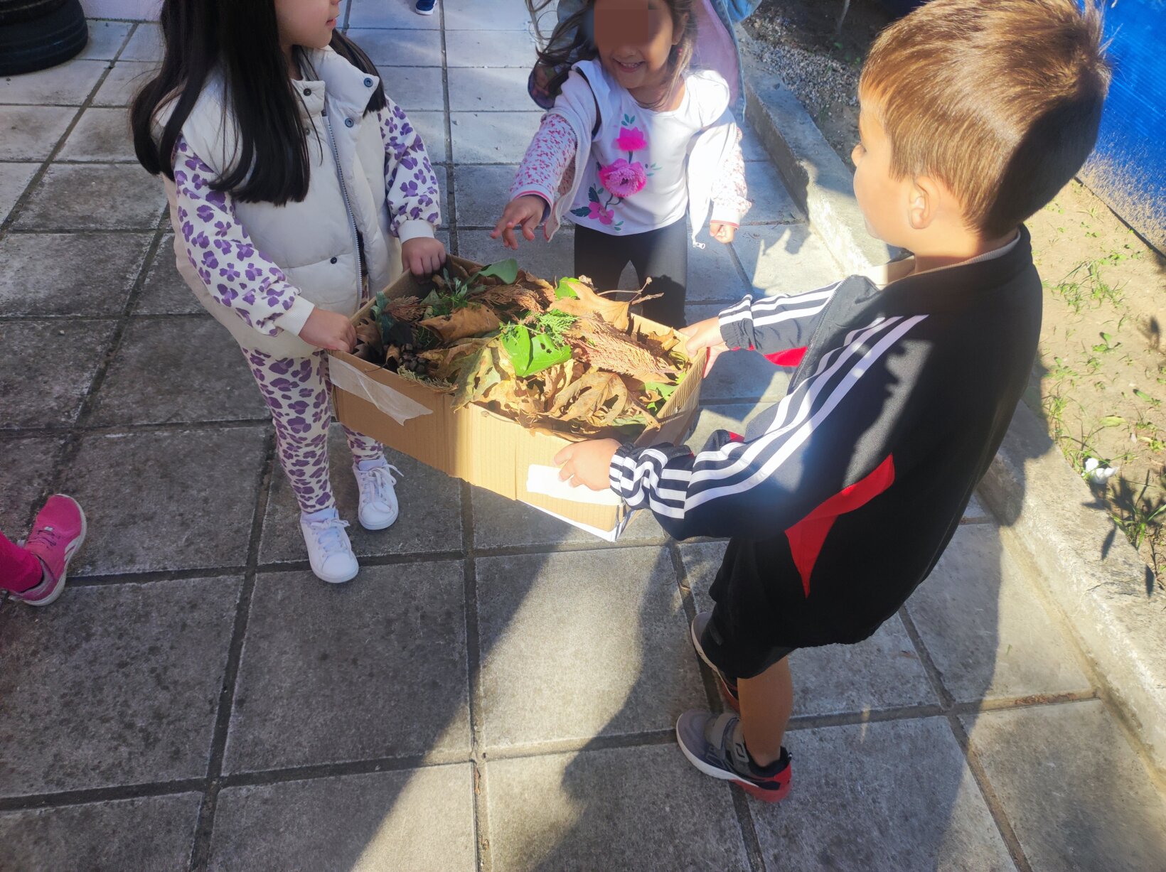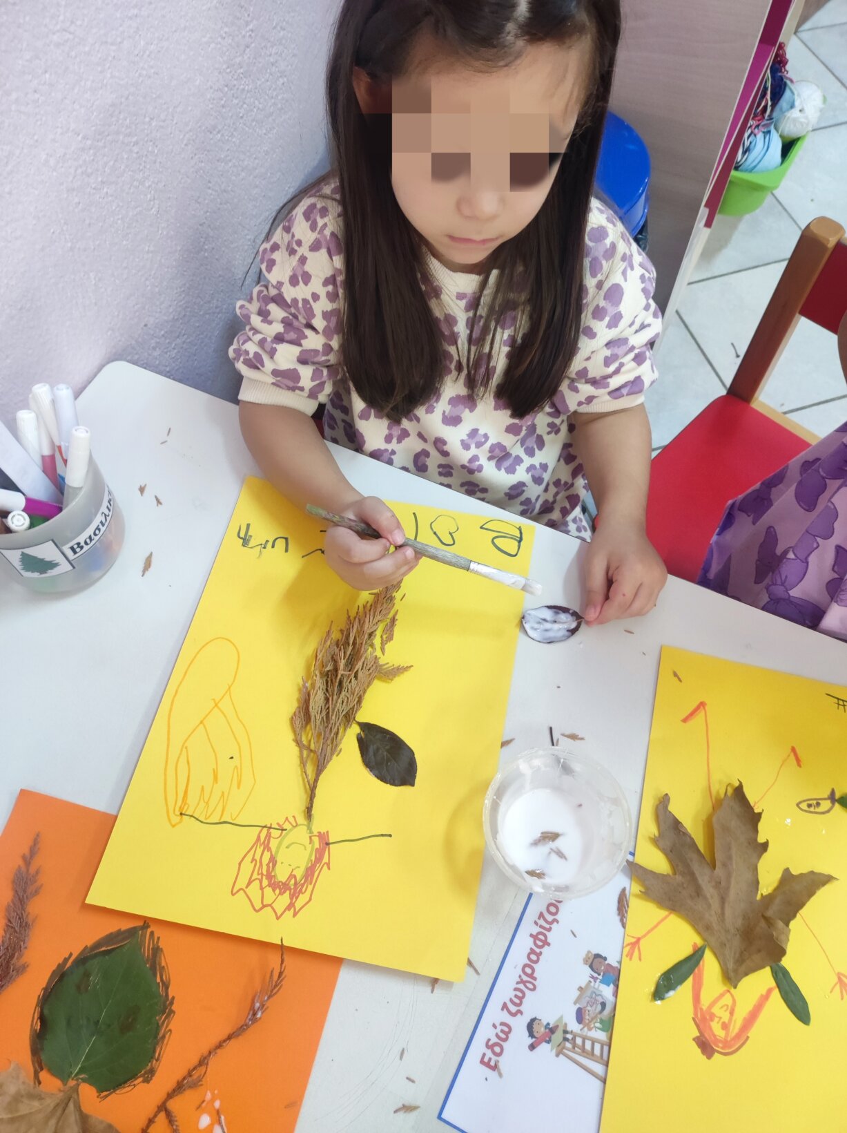 Μια εξόρμηση στην αυλή ήταν αρκετή για να αρχίσουν τα παιδιά να αναζητούν τις αλλαγές που έφερε το φθινόπωρο στην αυλή μας και να συλλέξουν τα στοιχεία του!! Τα υλικά της φύσης αποτέλεσαν το καμβά , προκειμένου να αναπτυχθεί η δημιουργικότητα και η φαντασία τους, καλλιεργώντας παράλληλα τις γνωστικές και κοινωνικό – συναισθηματικές δεξιότητες τους!!
