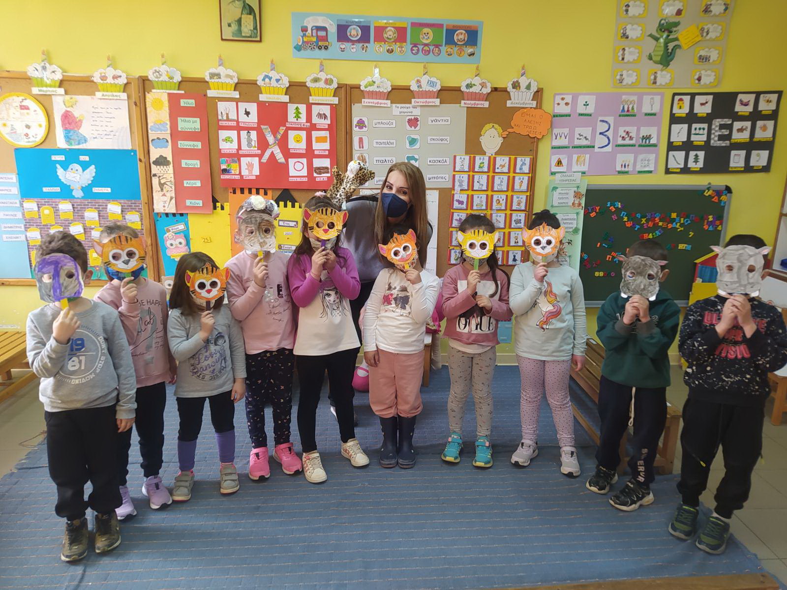 και μάθαμε τις ονομασίες από ορισμένες αποκριάτικες στολές (cowboy,pirate,witch,ghost etc). Τέλος φτιάξαμε μάσκες από τα ζώα που μάθαμε, και χαρήκαμε το καρναβάλι!
