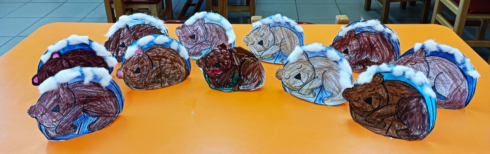 Στο τέλος της ενότητας φτιάξαμε χειροτεχνία την αρκούδα που κοιμάται.(A bear is sleeping)