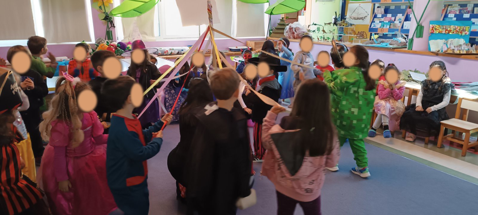 Παιδιά και εκπαιδευτικοί υποδεχτηκαμε την Τσικνοπέμπτη με αποκριάτικες στολές,τραγούδια,παιχνίδια,κατασκευές,μασκες και ατελείωτο χορό γύρω από το Γαϊτανάκι μας. Το παιχνίδι συνεχίστηκε και στην αυλή οπου τα παιδιά μπόρεσαν να χαρούν έναν υπεροχο ήλιο του Μαρτίου και να απολαύσουν τις αποκριάτικες μεταμφιέσεις τους.