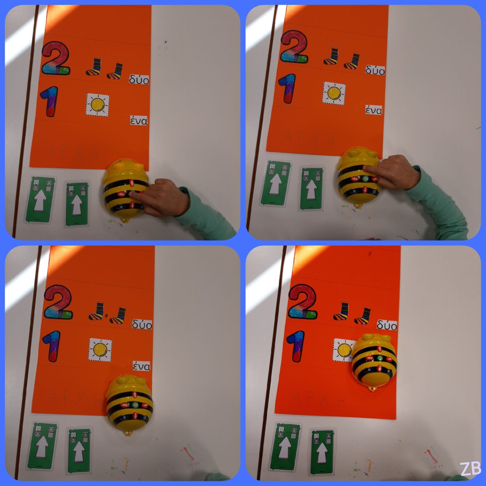 Ακόμη φτιάχνουμε μαζί με τα παιδιά μια πίστα με αριθμούς και οδηγούν το ρομποτάκι στον αριθμό 2