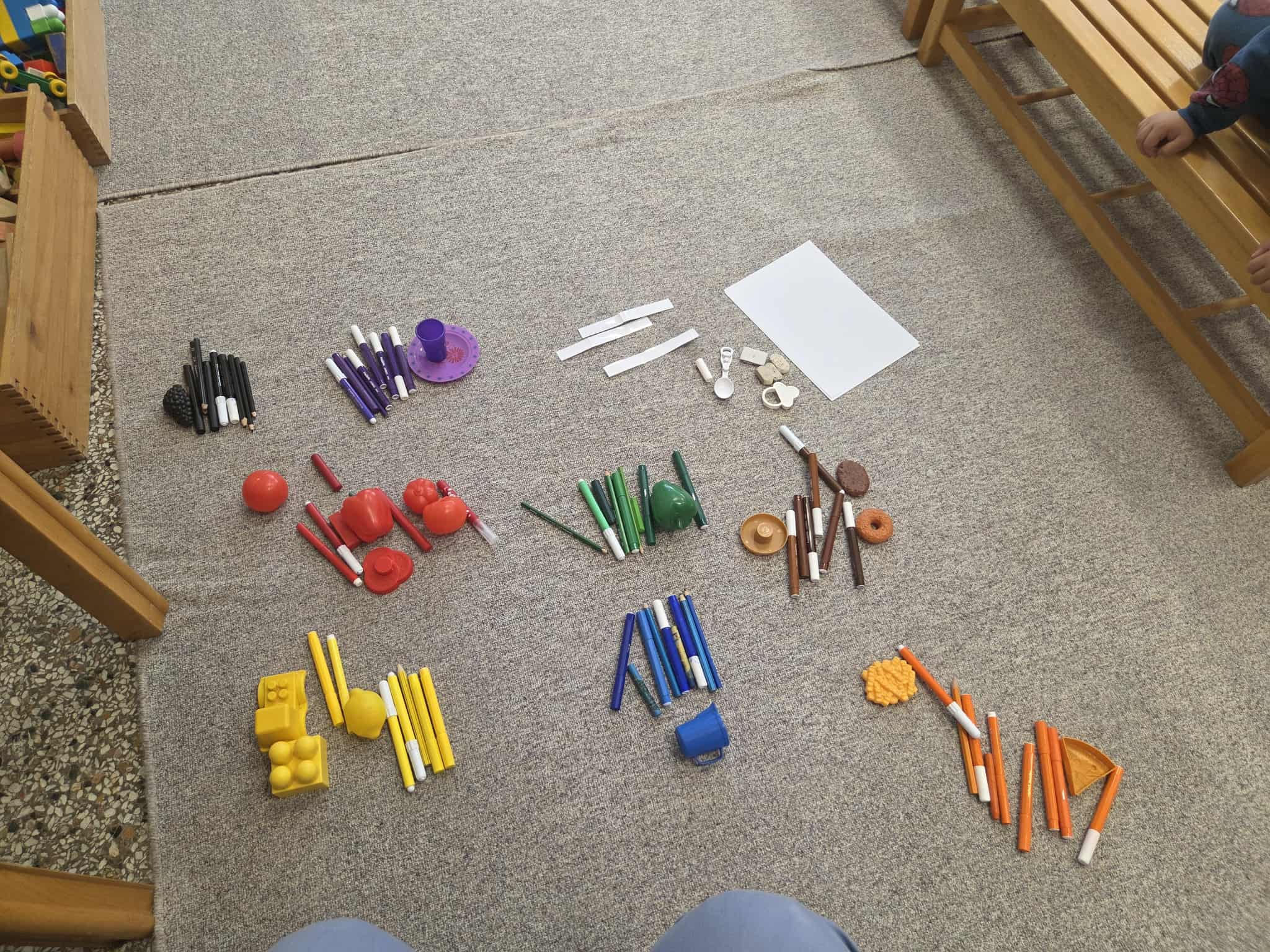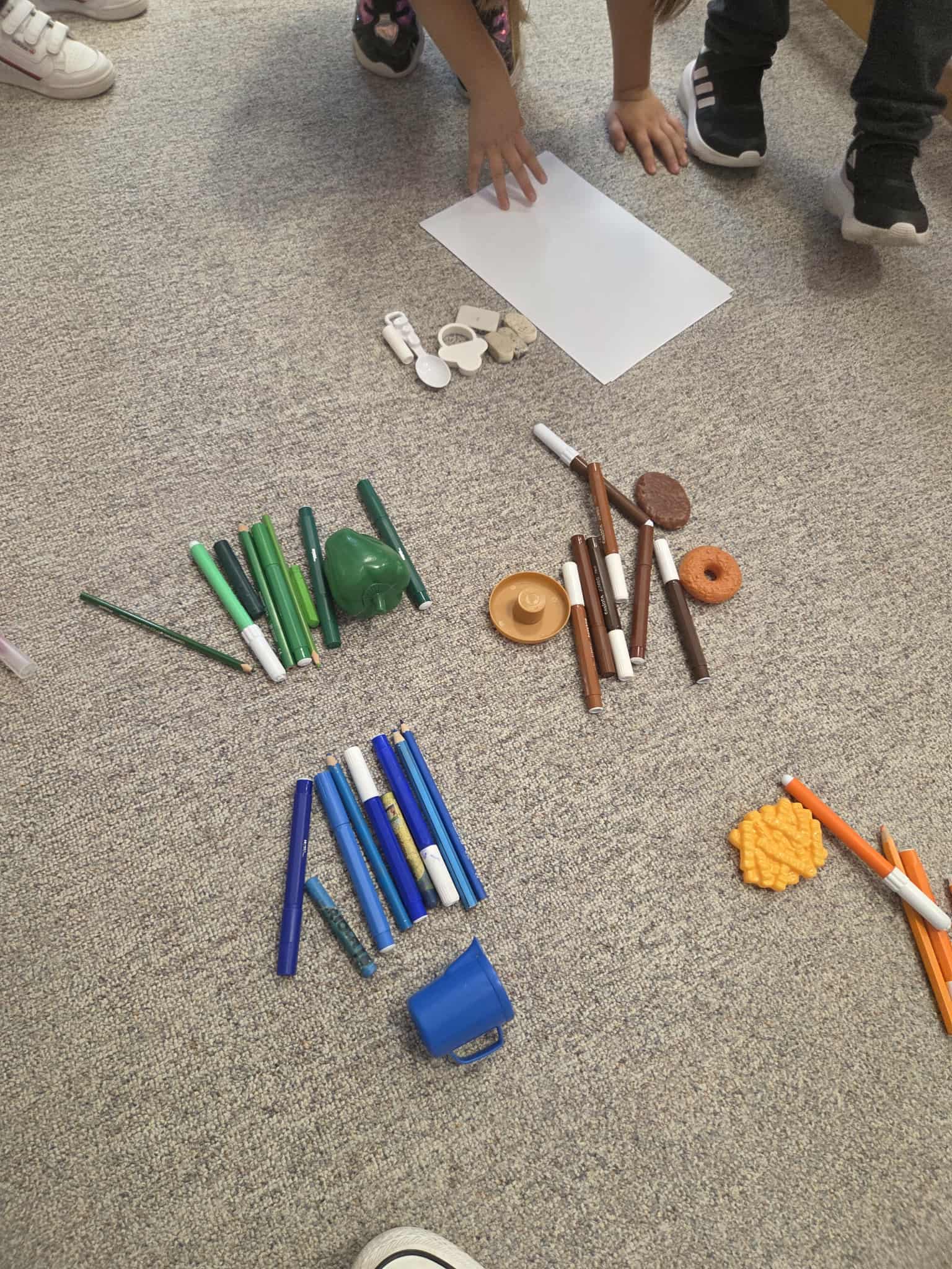 Βρίσκουμε αντικείμενα και παιχνίδια της τάξης μας και τα ομαδοποιούμε ανάλογα το σχήμα και το χρώμα τους.
