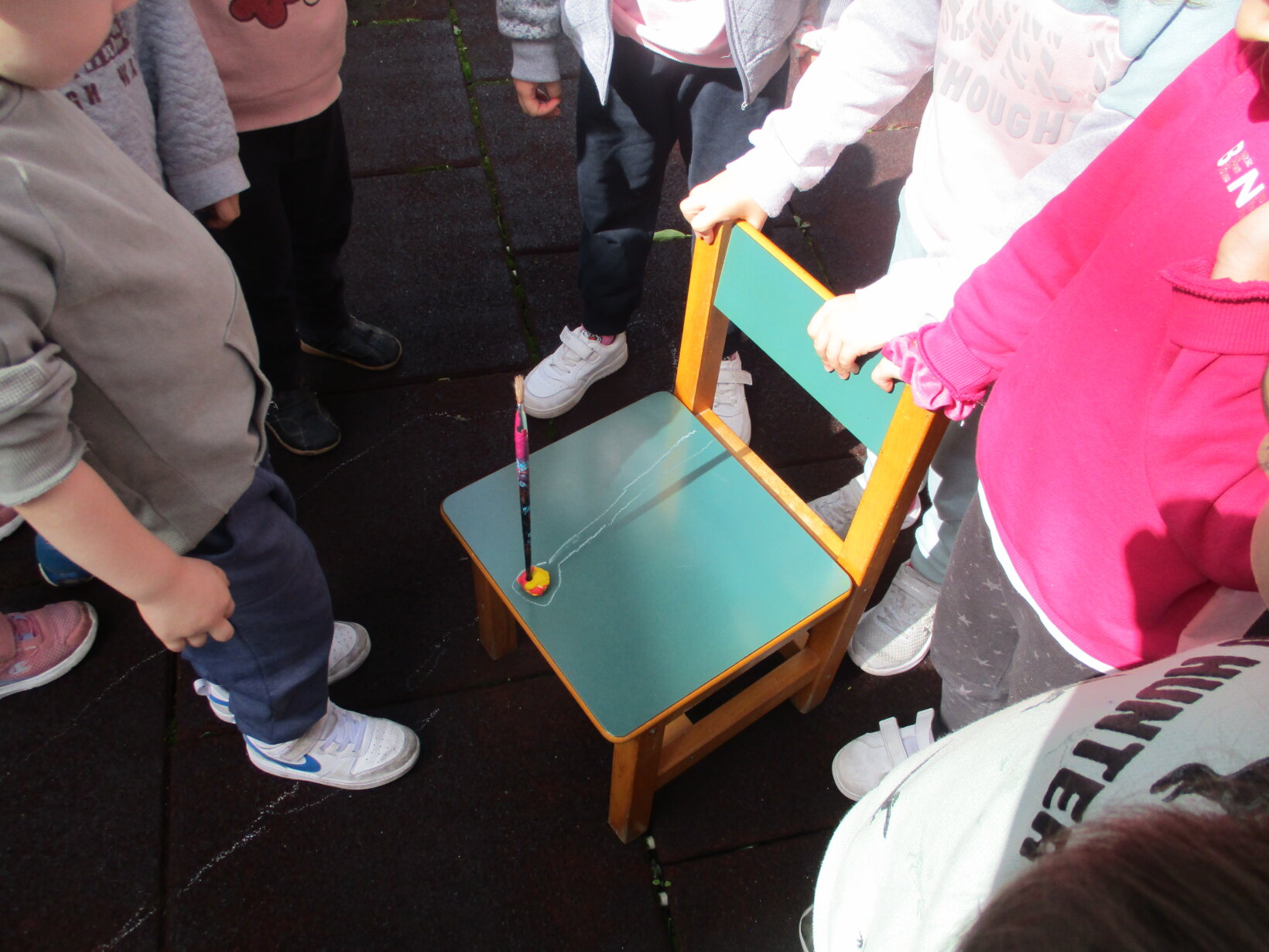 Βγήκαμε στην αυλή κι ασχοληθήκαμε με τις σκιές που δημιουργούνται από τον Ήλιο.Παρατηρήσαμε τις σκιές στα παιχνίδια,παίξαμε με τις σκιές μας και πειραματιστήκαμε με την σκιά ενός πινέλου.