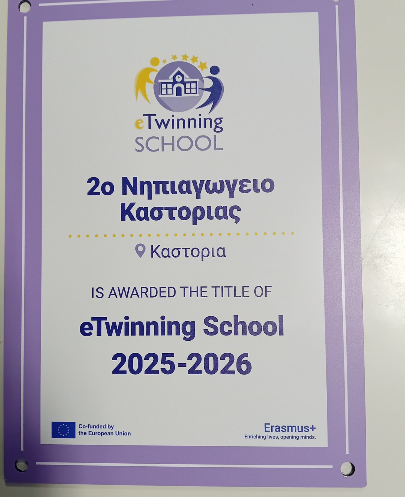 Σημαία eTwinning Schools και την πινακίδα που συνοδεύει τη διάκριση eTwinning School Label 2025-2026