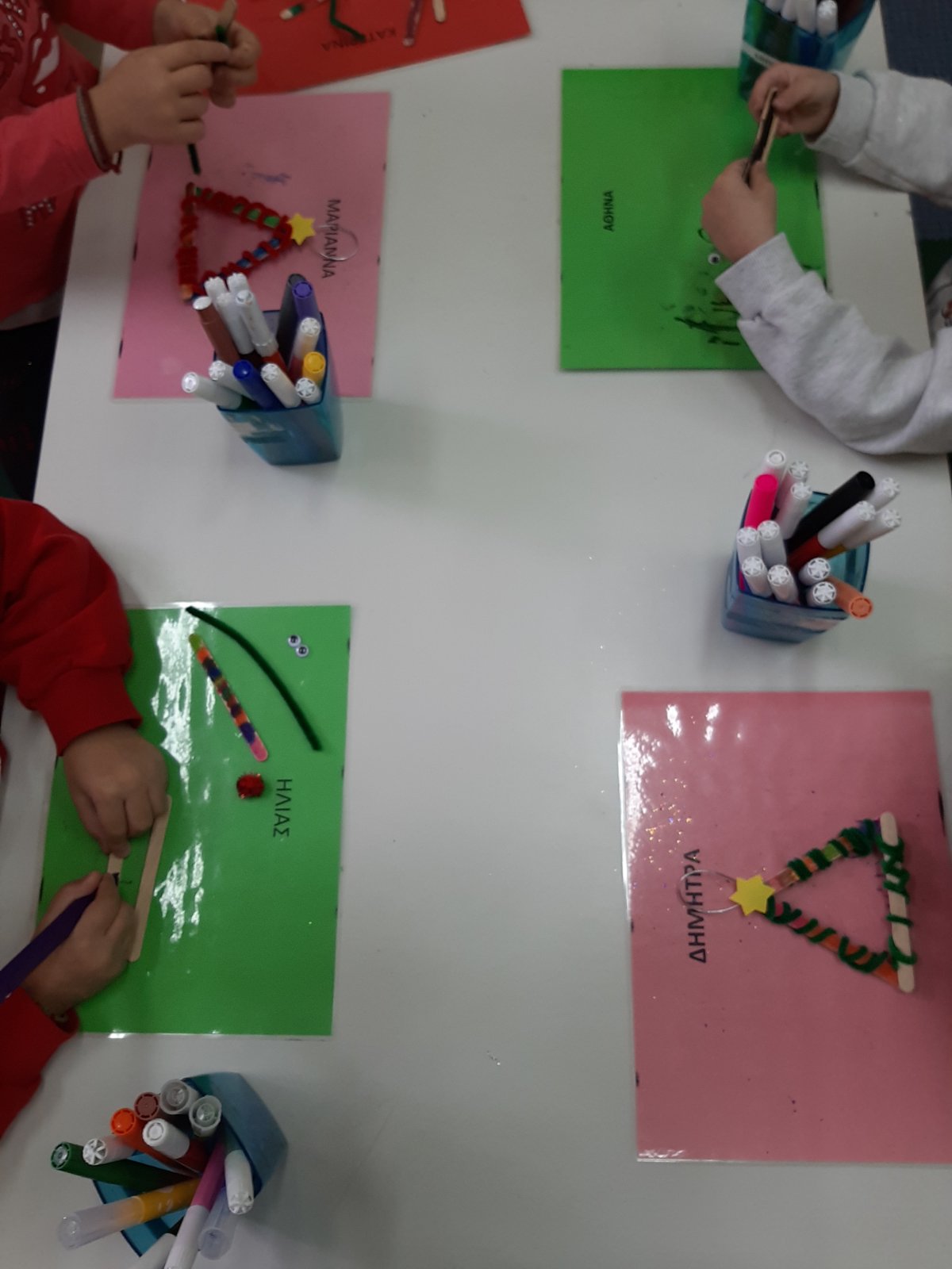 Ήρθε η ώρα για τον στολισμό του χριστουγεννιάτικου δέντρου που τόσο πολύ τα παιδιά περίμεναν. Φέτος τα στολίδια ήταν οικολογικά και χειροποίητα από τα ίδια. Βαμμένα κουκουνάρια διακοσμημένα με pom-pom, πηλός σε εορταστικά σχέδια με γκλίτερ και δέντρα και τάρανδοι με γλωσσοπίεστρα και σύρματα πίπας. Το δέντρο μας άναψε και θα μας κρατάει συντροφιά τις γιορτινές μέρες!