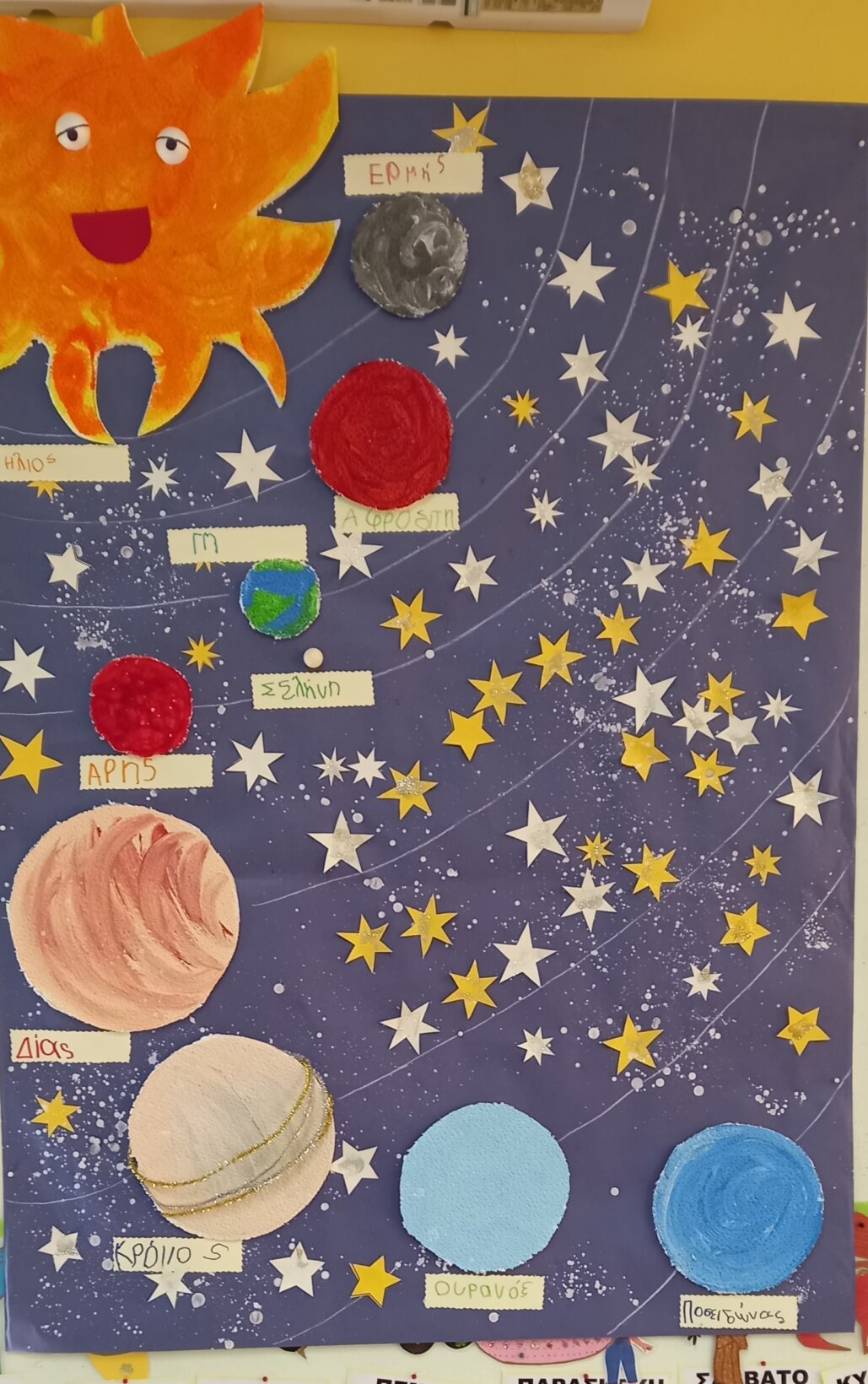 Στο 3ο Εργαστήριο Δεξιοτήτων με θέμα το Ηλιακό μας Σύστημα και τους Πλανήτες ,τα 2 τμήματα του νηπιαγωγείου μας προσπαθήσαμε να προσεγγίσουμε τις πολυάριθμες πτυχές ενός θέματος που έλκει πάντα το ενδιαφέρον των μικρών μας μαθητών αλλά και που πάντα εμπλουτίζει τις ήδη υπάρχουσες γνώσεις και των …ενηλίκων !