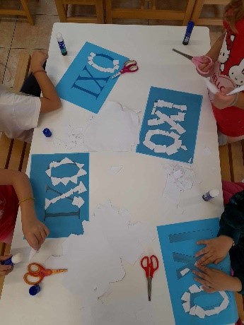 - Μουσικοκινητικό παιχνίδι όπου τα παιδιά έμαθαν να σχεδιάζουν τη λέξη «ΟΧΙ»