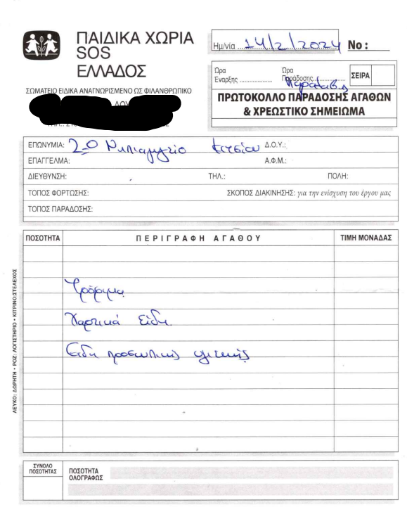 Ευχαριστούμε θερμά και τους γονείς του σχολείου μας κ. Σωτήρη και κ. Δέσποινα, που προσφέρθηκαν να μεταφέρουν τα πράγματα στο παιδικό χωριό SOS. Ο εθελοντισμός, άλλωστε, είναι πράξεις αλληλοβοήθειας!