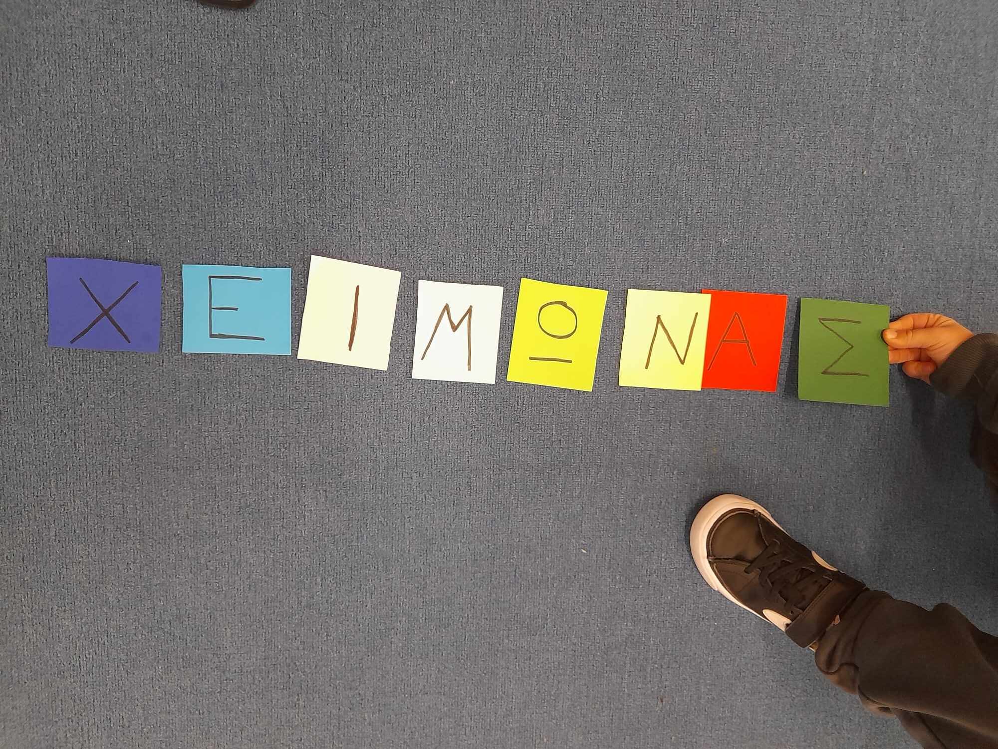 - Σχηματίζοντας τη λέξη χειμώνας με καρτέλες