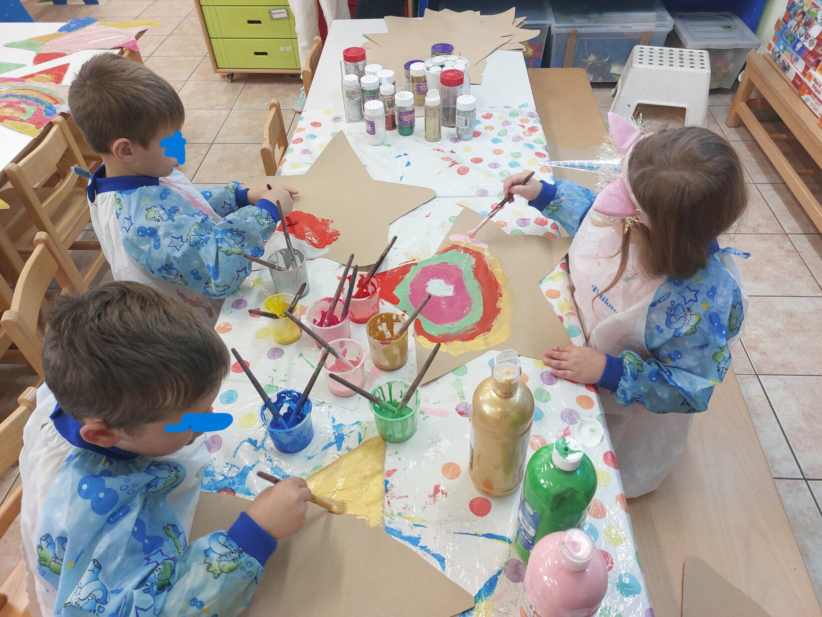 • Φορέσαμε τις κορδελίτσες- βραχιολάκια στα χεράκια τους και φτιάξαμε ο καθένας το δικό του υπέρλαμπρο αστέρι.