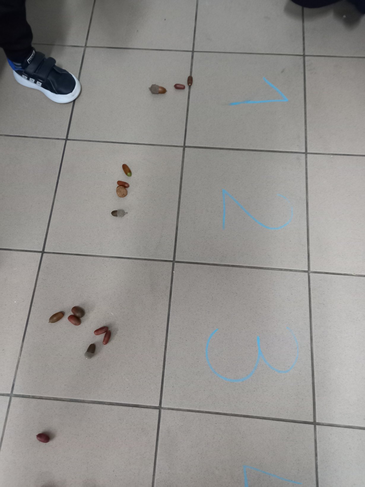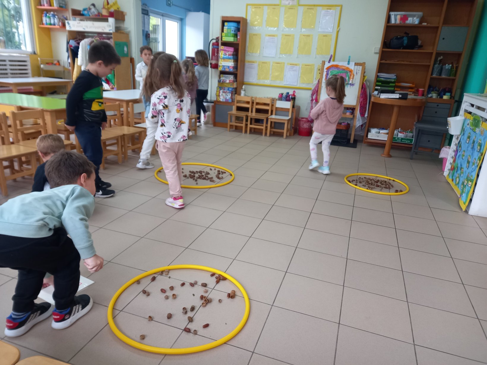 Ακονίσαμε το μυαλό μας στα μαθηματικά, γνωρίζοντας τον αριθμό 2 και παίζοντας με τα βελανίδια που συλλέξαμε.