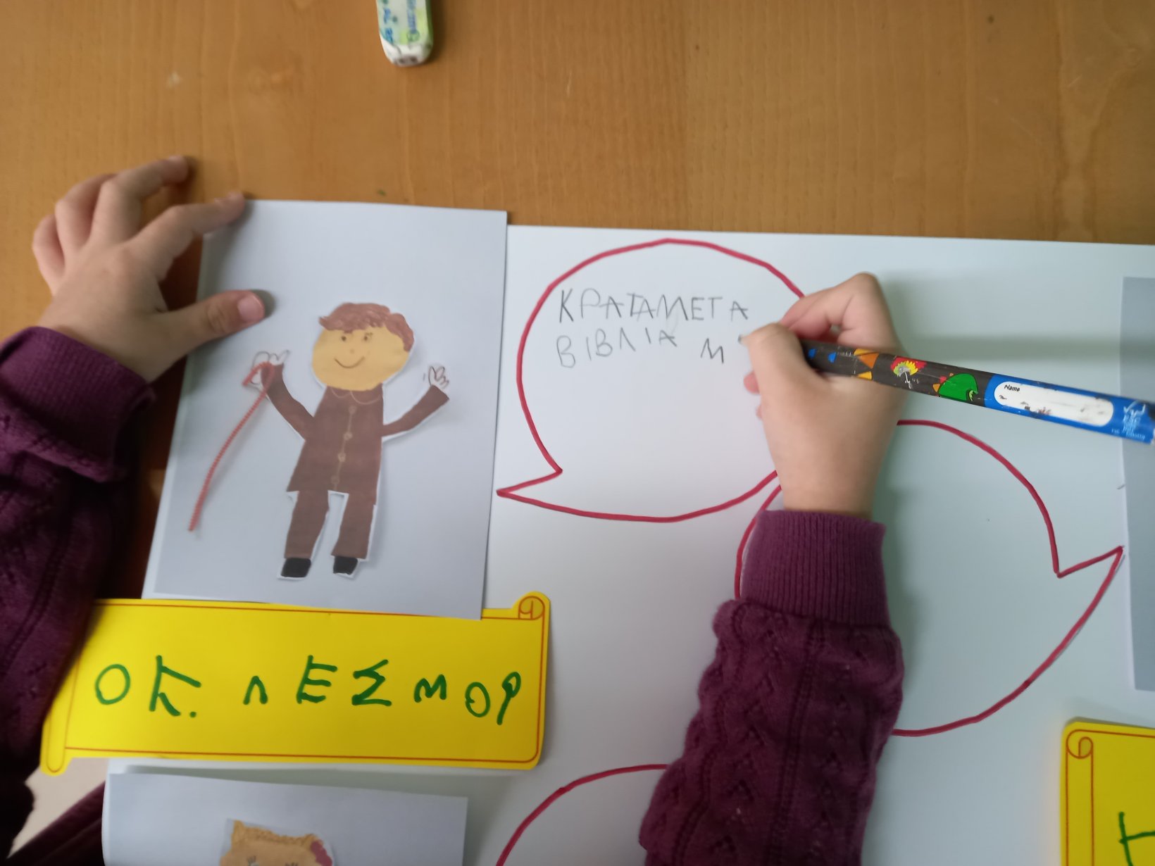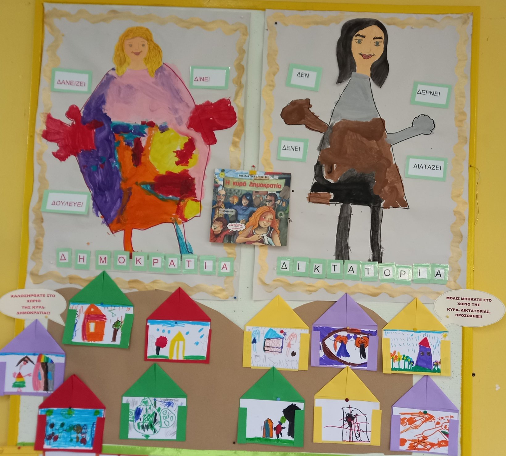 Τιμήσαμε την επέτειο του Πολυτεχνείου με την ανάγνωση σχετικών βιβλίων, όπως “η κυρά Δημοκρατία” και σχεδιάσαμε χαρούμενα και λυπημένα χωριά για να δείξουμε με καλλιτεχνική διάθεση την αντίθεση της Δημοκρατίας από τη Δικτατορία. Τέλος, ασκήσαμε τα εκλογικά μας δικαιώματα, δηλώνοντας ποιο πολίτευμα προτιμάμε.