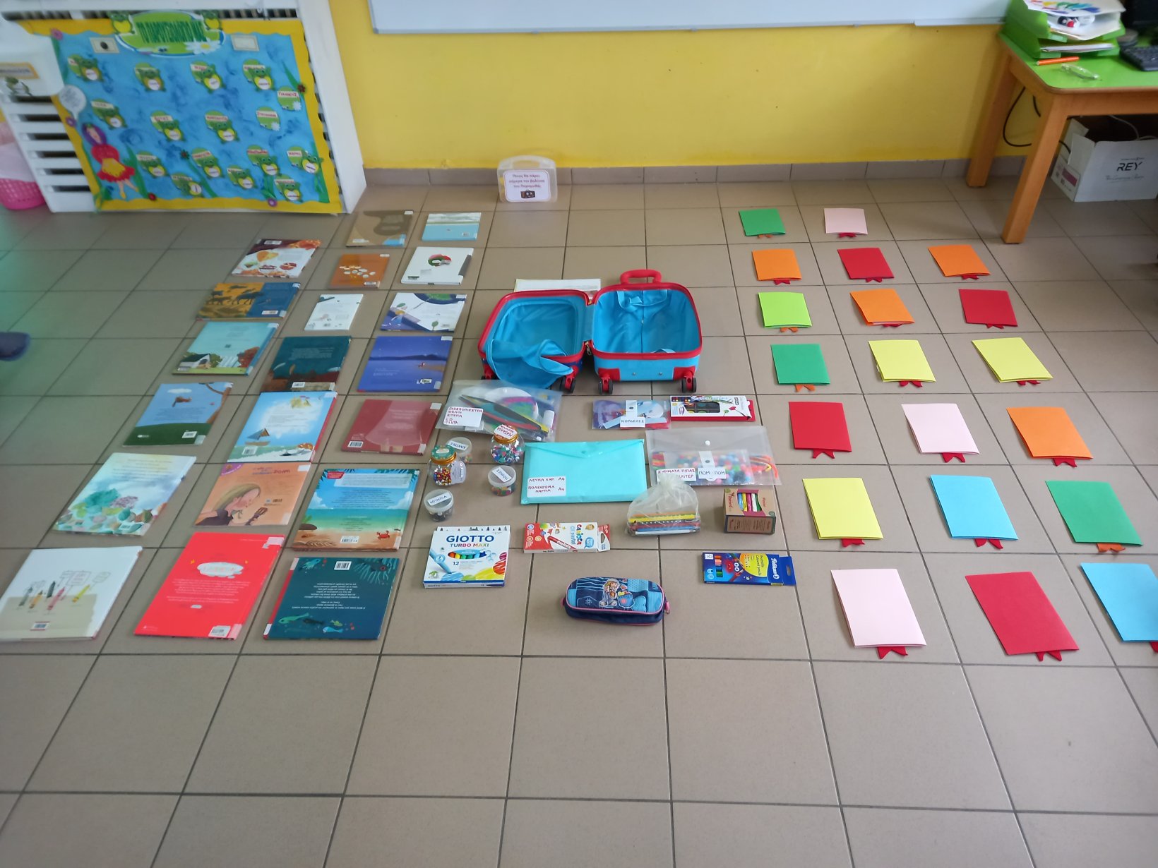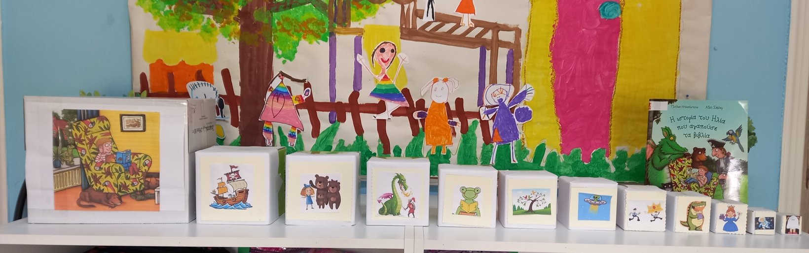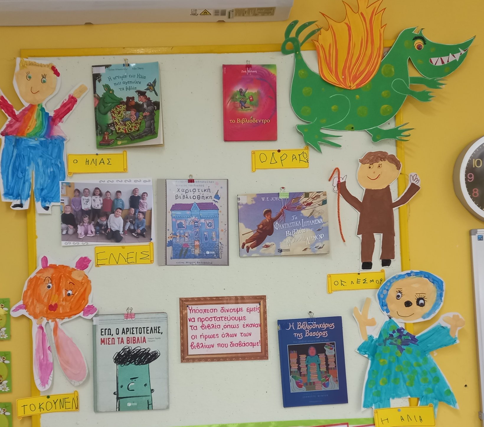 Παράλληλα, ξεκινήσαμε τις προετοιμασίες για τη λειτουργία της Δανειστικής Βιβλιοθήκης. Αποφασίσαμε ποια βιβλία θα βάλει η βιβλιοθηκάριος στο σεντούκι της και συντάξαμε και υπογράψαμε το Συμβόλαιο καλής χρήσης των βιβλίων. Ετοιμάσαμε τις κάρτες δανεισμού και την βαλίτσα του Παραμυθά και διαβάσαμε πολλά βιβλία των οποίων οι ήρωες θα προστατεύουν και τα δικά μας βιβλία.