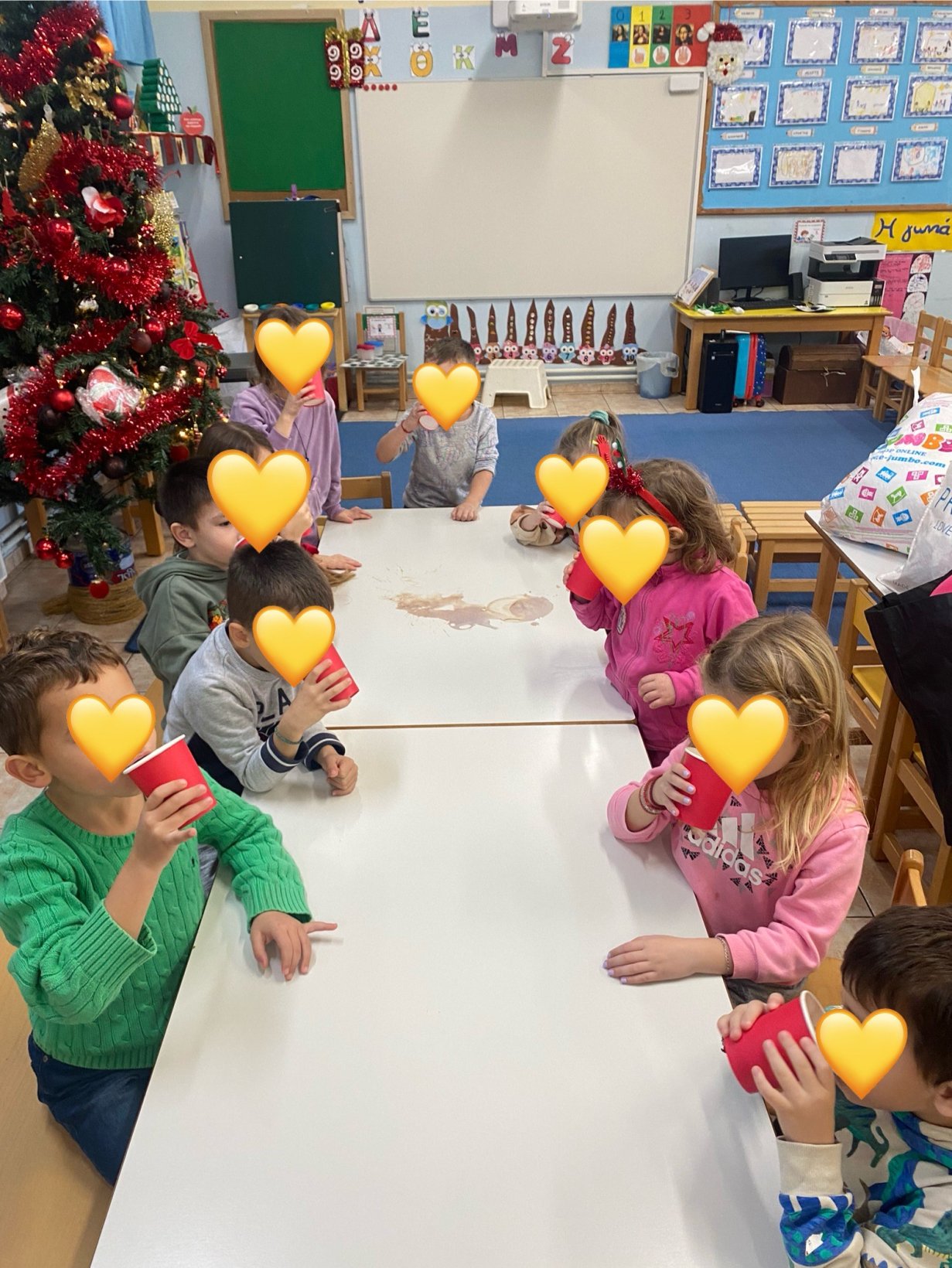 Τα ξωτικά του νηπιαγωγείου που έμειναν στο σχολείο μέχρι το απόγευμα, ξεκουράστηκαν απολαμβάνοντας μια ζεστή σοκολάτα με σαντιγί που έφτιαξαν με τα χεράκια τους!