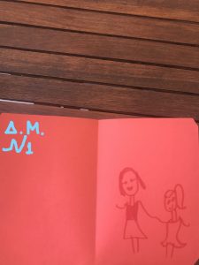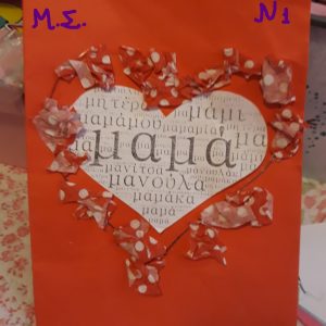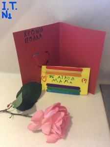 Νάτη και άλλη μία καλλιτέχνης! Συγκέντρωσε όλη της την αγάπη, τη φαντασία, την επιδεξιότητα αλλά και διάφορα υλικά και στόλισε την κάρτα της με περισσή χαρά! Στη συνέχεια, πήρε τη μανούλα της από το χέρι και βγήκαν βόλτα…… Πού, δε μας είπε. Είναι το μυστικό τους…..Σίγουρα όμως τους έδωσε μεγάλη χαρά!!!! Συγχαρητήρια για όσα της πρόσφερες!!!Χρόνια πολλά γεμάτα αγάπη και χαμόγελα σας ευχόμαστε!