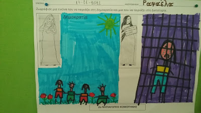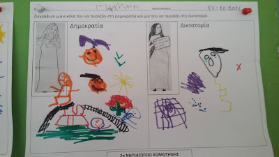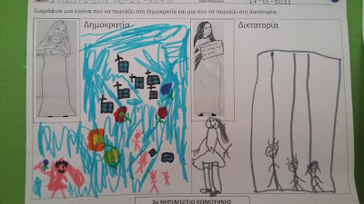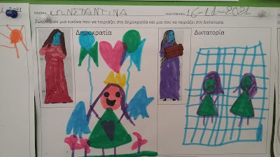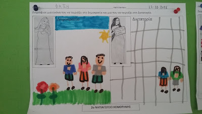 Η κυρά Δημοκρατία και η κυρά Δικτατορία μέσα από το βιβλίο της αγαπημένης Κωνσταντίνας Αρμενιάκου, βοήθησαν τα παιδιά να κατανοήσουν τις έννοιες και να τις αποτυπώσουν στο χαρτί με τον καλύτερο δυνατό τρόπο!