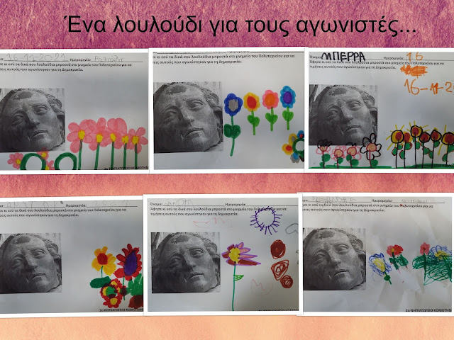 Τέλος, αφήσαμε κλείσαμε τις δραστηριότητές μας αφήνοντας κι εμείς το δικό μας λουλούδι στη μνήμη των αγωνιστών του Πολυτεχνείου, των αγωνιστών της Δημοκρατίας.