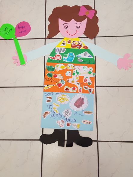 Τίτλος Προγράμματος του Νηπιαγωγείου μας: ”Ζούμε σωστά-Διατρεφόμαστε υγιεινά”. Βασικός σκοπός του προγράμματος ήταν η γνωριμία των πιο σημαντικών ομάδων τροφών, της έννοιας της ισορροπημένης διατροφής και της σημασίας της για τη ζωή μας, ενώ ξεχωριστή αναφορά πραγματοποιήθηκε στη λεγόμενη Μεσογειακή Πυραμίδα. Έτσι οι μαθητές του 2ου Τμήματος του νηπιαγωγείου μας κατασκεύασαν την Υγιεινούλα !!