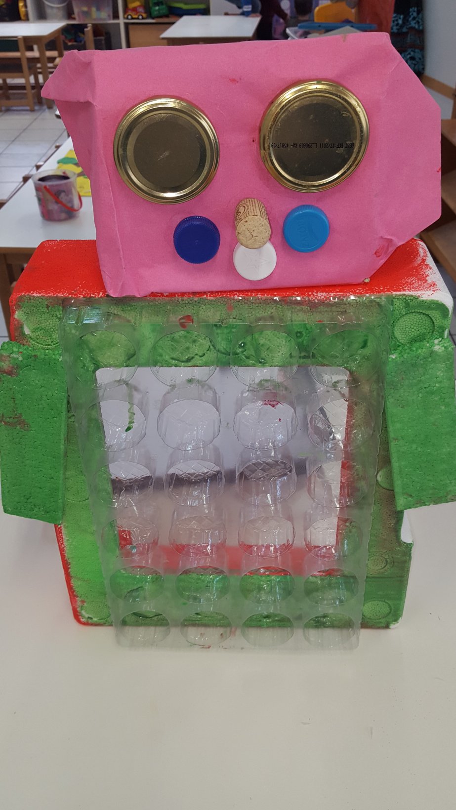 Η ευαισθητοποίηση των παιδιών για τα προβλήματα που αντιμετωπίζει το περιβάλλον ολοκληρώνεται μέσα σε πνεύμα συνεργασίας και αλληλεγγύης με ομαδική εργασία και την κατασκευή από ανακυκλώσιμα υλικά της “Σούλας της Ανακυκλωσούλας που αποτέλεσε την καθημερινή τους απασχόληση με διάφορα παιχνίδια ρόλων!