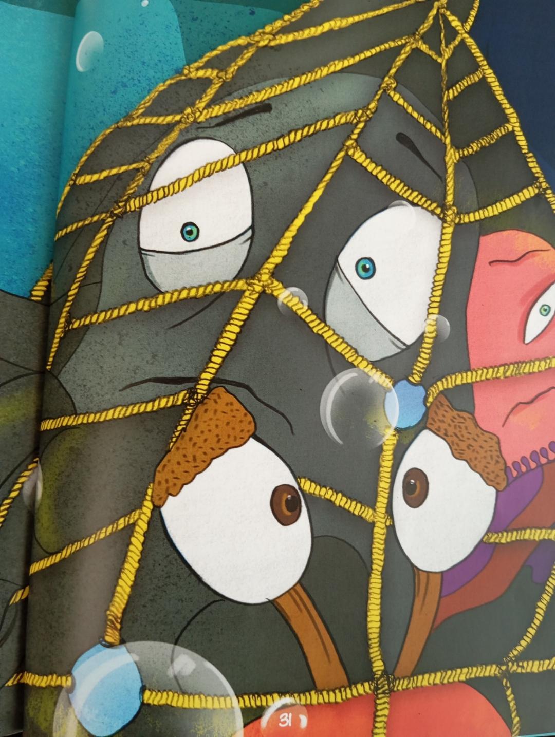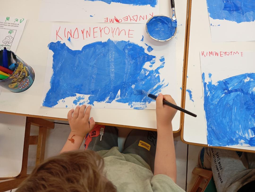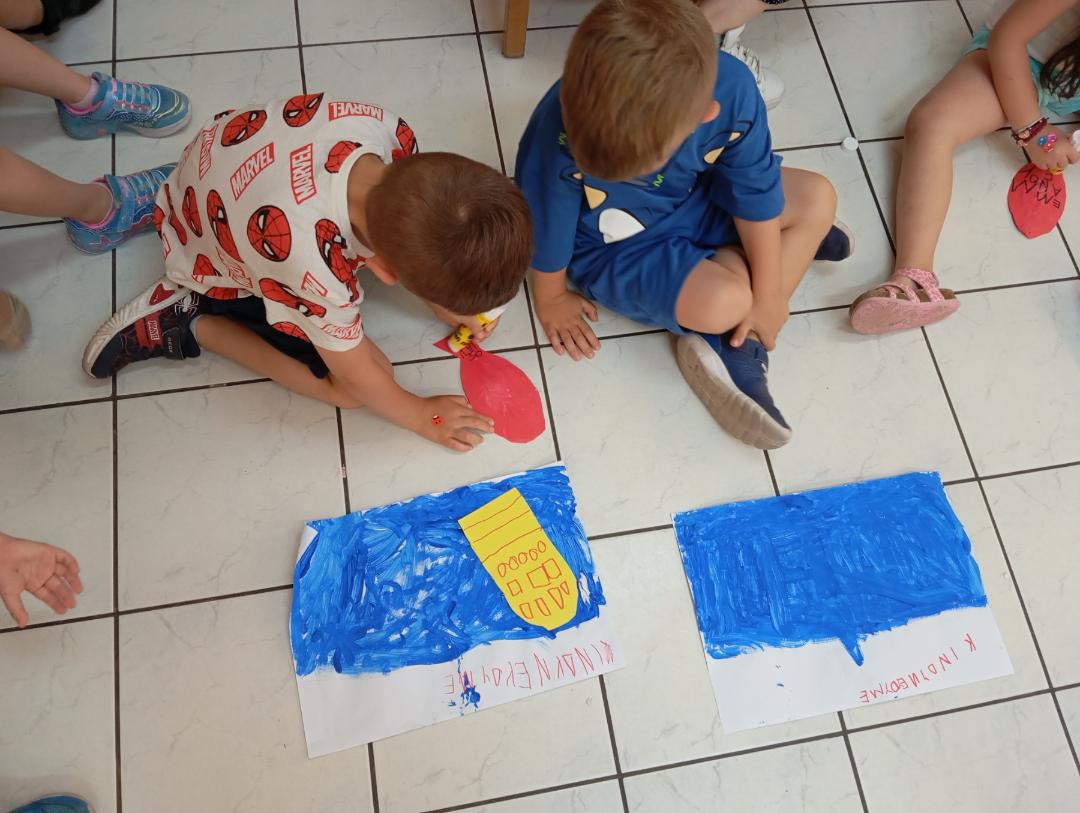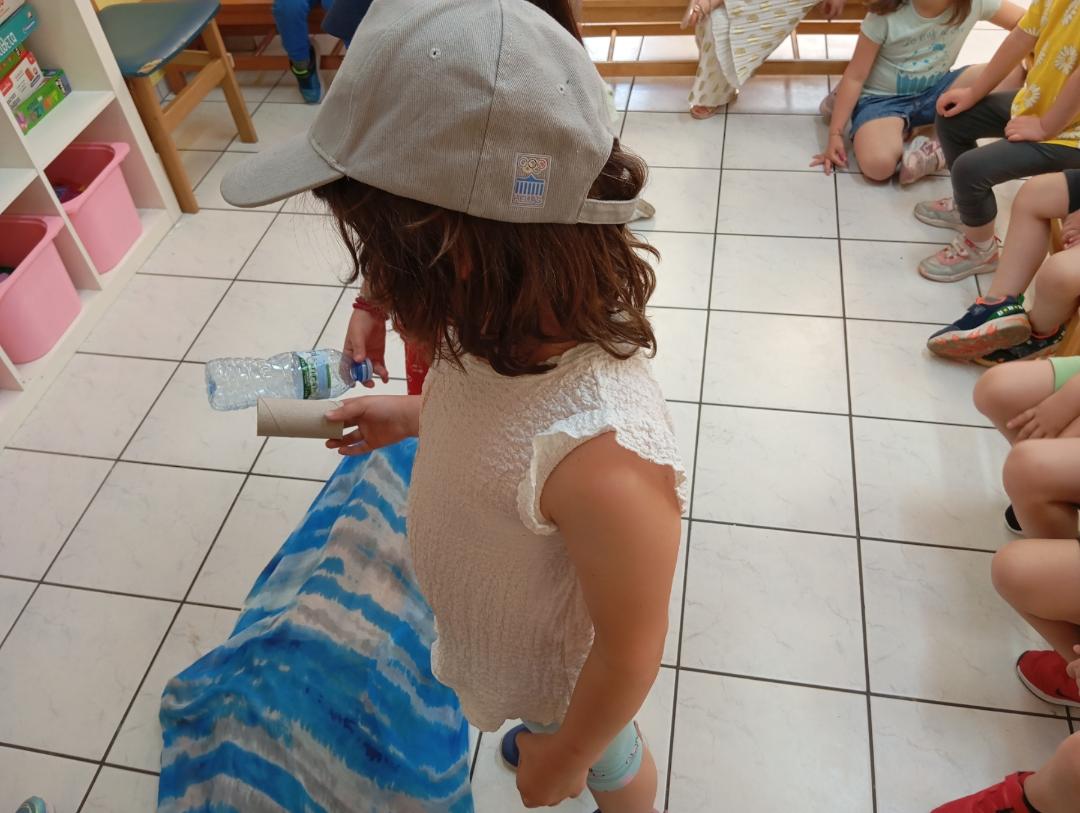 Η ιστορία μιλούσε για τα ψάρια που μπερδεύτηκαν κι έφαγαν τα πλαστικά μπουκάλια. Έτσι, αποφασίσαμε να αναπαραστήσουμε την εικόνα της ιστορίας στο χαρτί.
