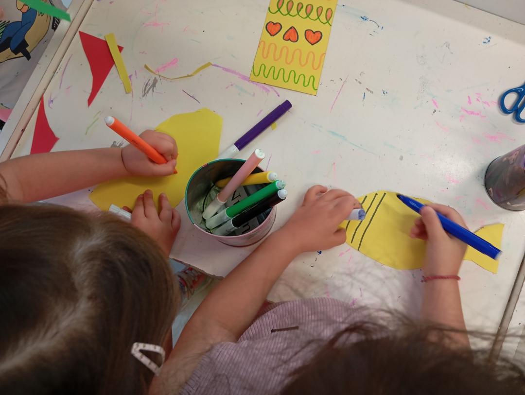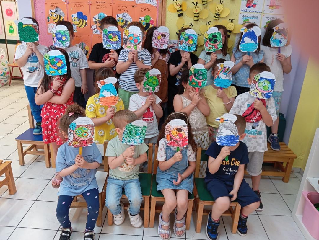 Οι μαθητές ανέσυραν καλοκαιρινές αναμνήσεις με δελφινάκια που είδαν κατά την παρμονή τους στην παραλία.