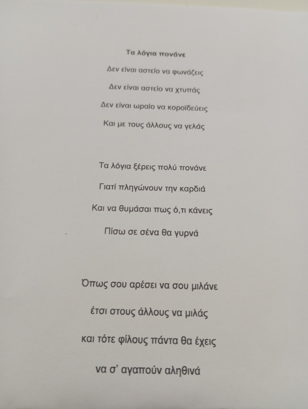 Με την ολοκλήρωση της δράσης, σε κύκλο οι μαθητές/τριες επέλεξαν να μιλήσουν με τη φωνή ενός αδέσποτου ζώου, εκφράζοντας τις σκέψεις τους, ξεκινώντας με τη φράση «Αν ήμουν ένα αδέσποτο…».