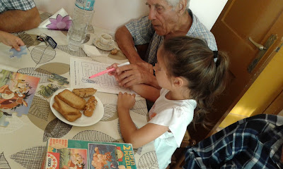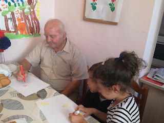 Το διαβάσαμε ονοματίσανε τα χρώματα που ήξεραν και στην συνέχεια παίξαμε με τις τέμπερες ,είδαμε τα βασικά χρώματα και κάναμε μίξεις για τα υπόλοιπα,