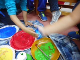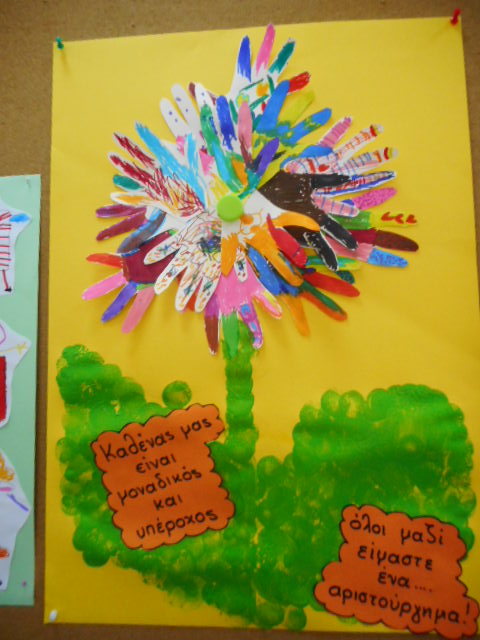 Το διαβάσαμε ονοματίσανε τα χρώματα που ήξεραν και στην συνέχεια παίξαμε με τις τέμπερες ,είδαμε τα βασικά χρώματα και κάναμε μίξεις για τα υπόλοιπα,