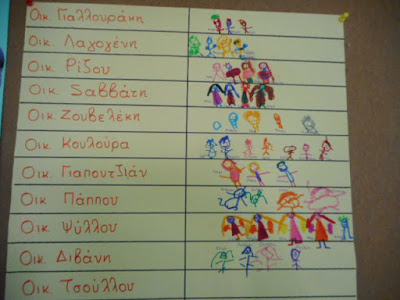ζωγραφίσαμε και μετρήσαμε τα άτομα σε κάθε οικογένεια,
