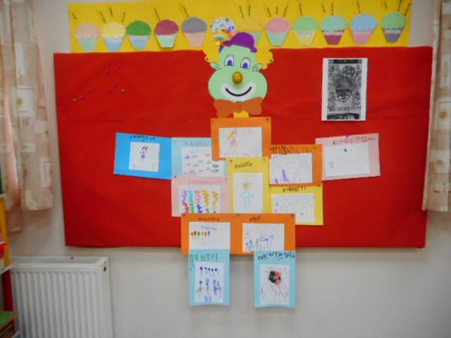 ….παιχνίδι περιγραφής σε ζευγάρια : περιγράφει το ένα παιδί το καπέλο του κλόουν στο άλλο για να το βρει και να το φορέσει στον κλόουν…