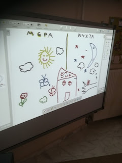 Κάνουμε το πείραμα με το φακό. Βρίσκουμε στην υδρόγειο την Ελλάδα και βάζουμε εκεί ένα αυτοκόλλητο. Με ένα φακό αναπαριστούμε τον ήλιο. Πότε έχει μέρα η Ελλάδα και πότε νύχτα; Που πρέπει να είναι ο ήλιος;;Δείχνουμε στα παιδιά τη γη στο Google Earth καθώς και το ηλιακό σύστημα και τους εξηγούμε το πως περιστρέφεται.
