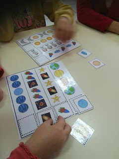 Συνεχίσαμε αυτήν την εβδομάδα την θεματική μας ενότητα Ηλιακό σύστημα- πλανήτες. Μέσα από βιβλία, εποπτικό υλικό ,παραμύθια ,τραγούδια και πληροφορίες απο το διαδίκτυο μάθαμε για αυτούς ,παίξαμε γλωσσικά μαθηματικά,ψυχοκινητικά παιχνίδια και κάναμε αντίστοιχες κατασκευές.Μερικά ακόμα μας έμειναν να ανακαλύψουμε για τους αστερισμούς …την επόμενη εβδομάδα!!