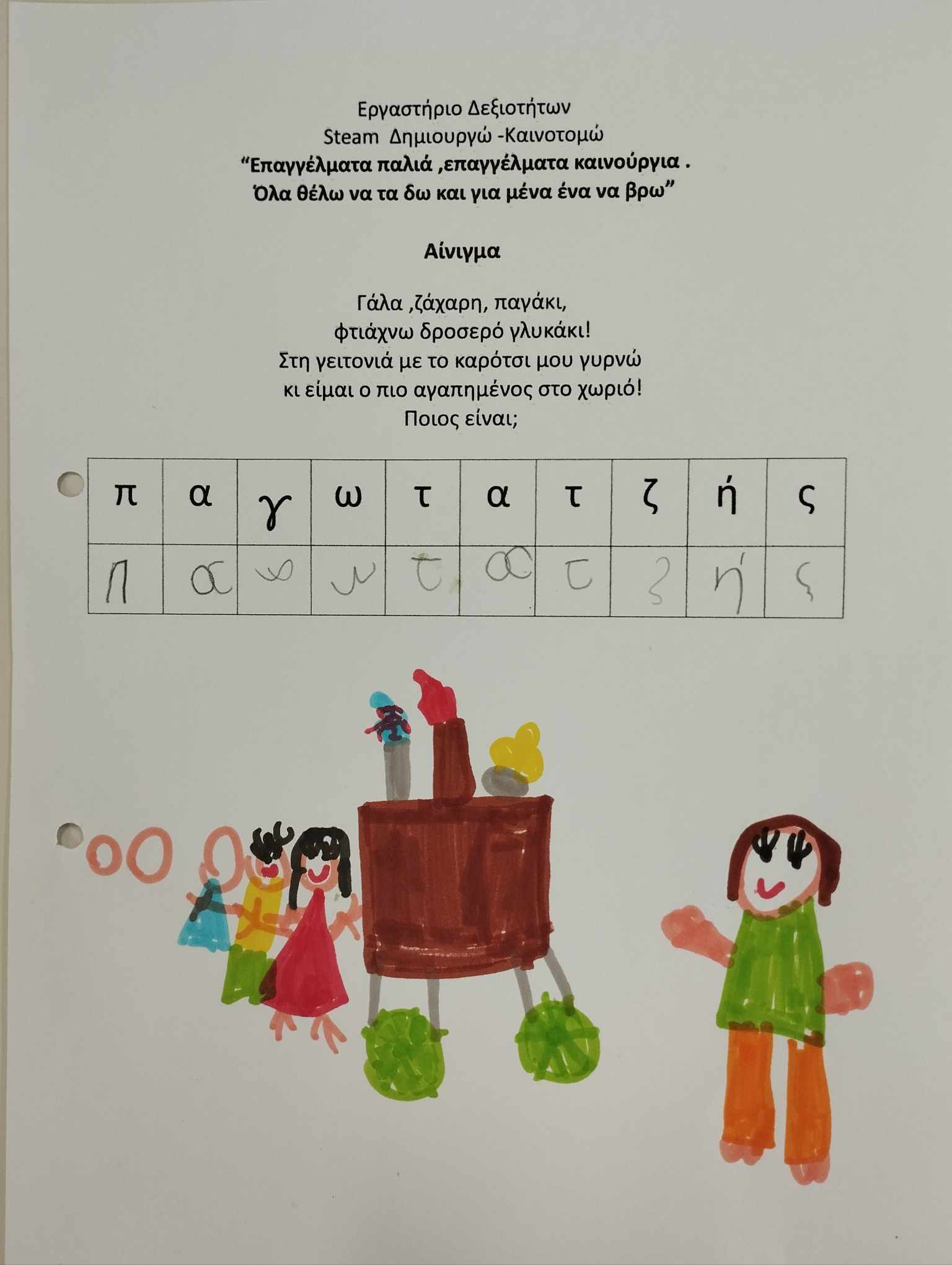 Δημιουργώ και Καινοτομώ-STEAM Ζωγραφίζω παλιά επαγγέλματα! Ζωγραφίζω το παραμύθι ” Ο Νερουλάς και το πυθάρι”