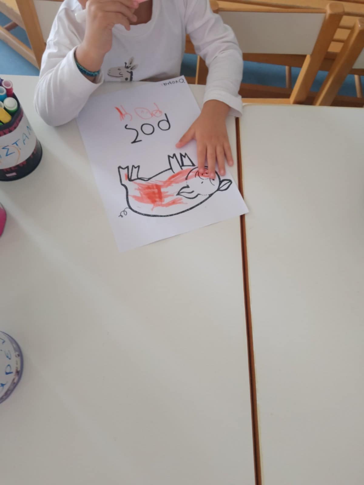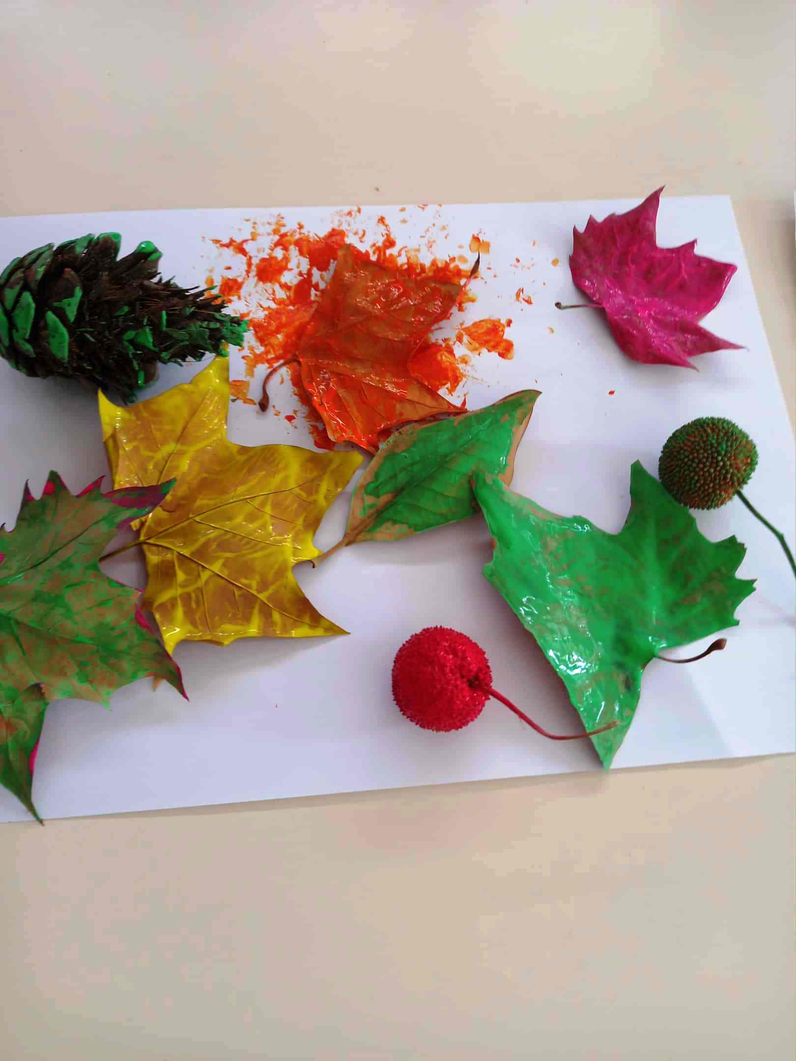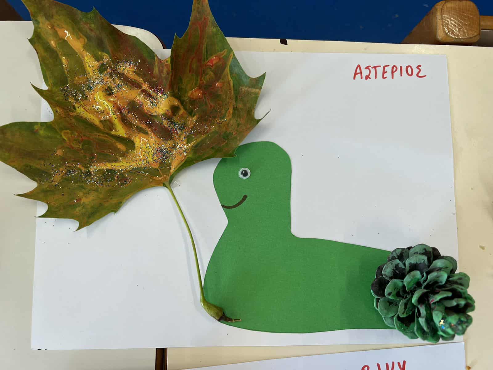 Τα πινέλα μας πήραν” φωτιά”! Αποτυπώματα φύλλων που μαζέψαμε από την αυλή του σχολείου μας  έγιναν φθινοπωρινό δάσος! Τσουπ! Να κι ένας αγκαθωτός σκαντζόχοιρος, ο Άκης ο σκαντζοχοιράκης  απολαμβάνει ένα περίπατο ανάμεσα στα δέντρα…