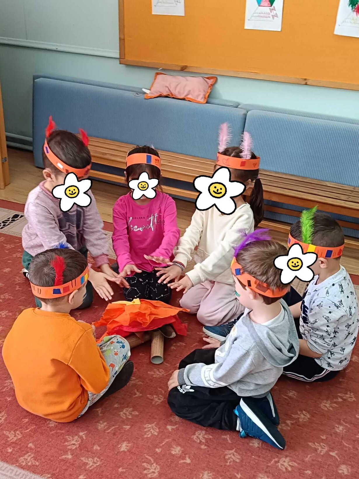 Δραματοποιήσαμε το παιδικό τραγούδι “10 ινδιάνοι μικροί” και χορέψαμε γύρω από την φωτιά με τους ήχους ινδιάνικης μουσικής!