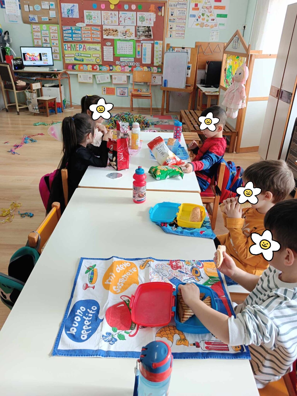 Χορέψαμε, γυρίσαμε γύρω από το γαϊτανάκι και απολαύσαμε νόστιμες λιχουδιές! Ευχαριστούμε θερμά τον Σύλλογο γονέων και κηδεμόνων για την ευγενική χορηγία χυμού σνακ και σερπαντίνας για κάθε παιδί.