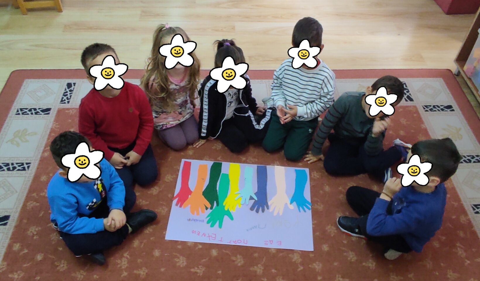 Τραγουδήσαμε τραγούδια και φτιάξαμε μία ομαδική εργασία που έγραφε “Εδώ Πολυτεχνείο”.