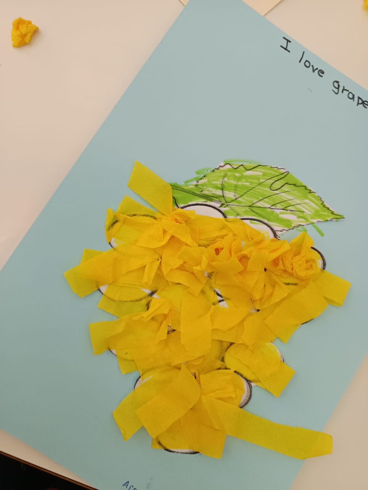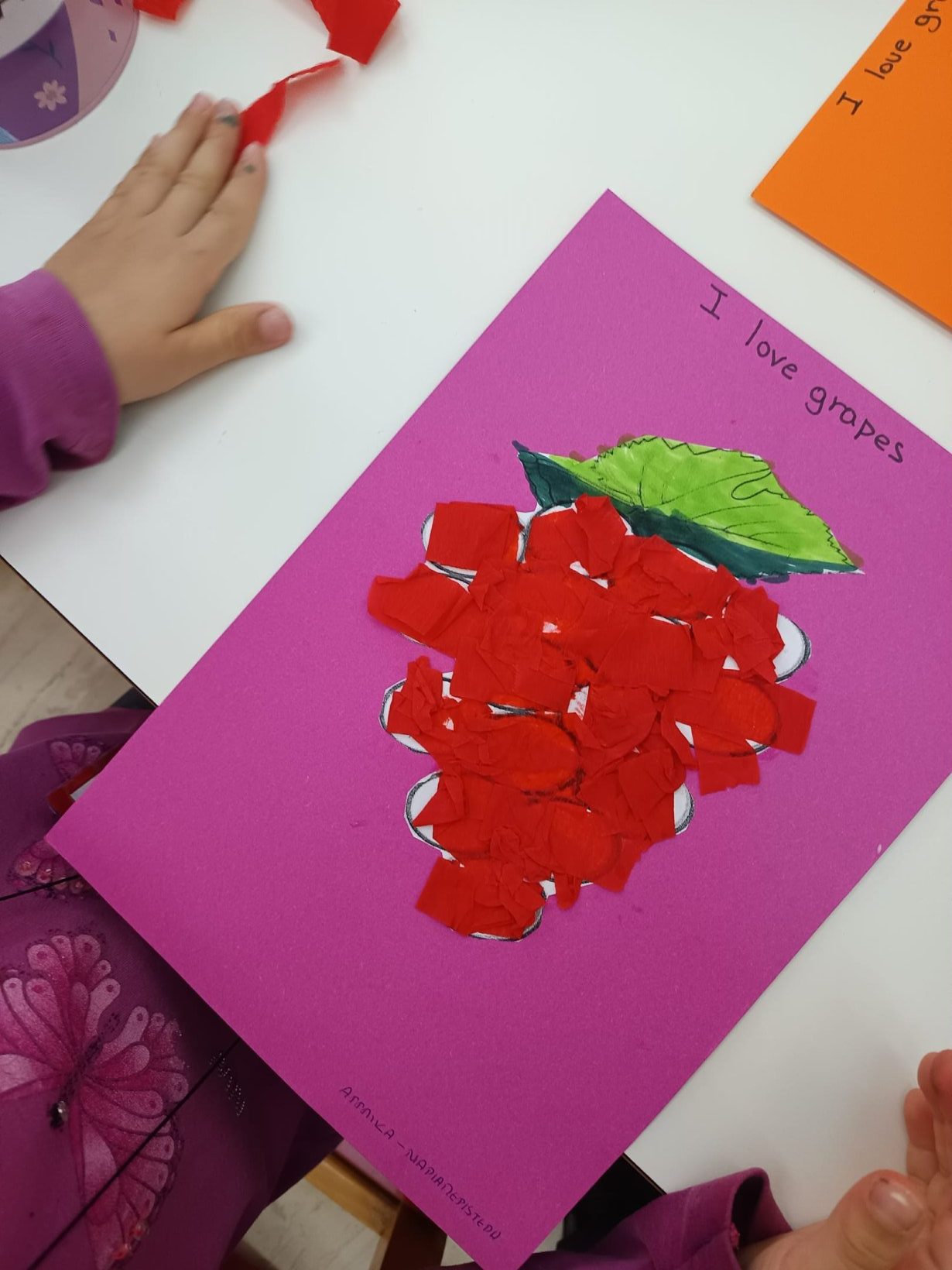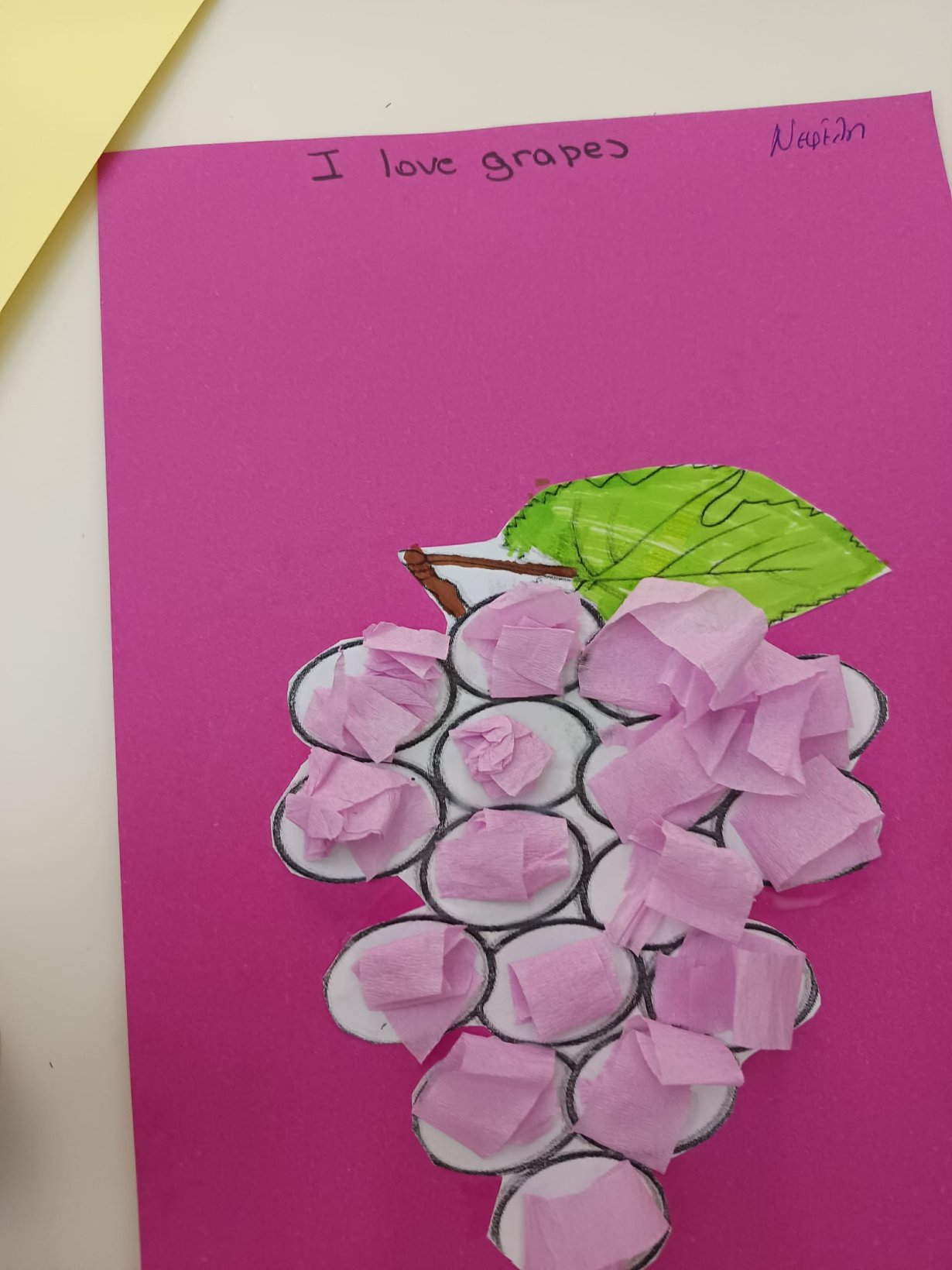 Το μάθημά μας ολοκληρώθηκε με μια όμορφη ατομική εργασία με τίτλο “I love Grapes”, την οποία τα παιδιά δημιούργησαν με μεράκι και δημιουργικότητα.