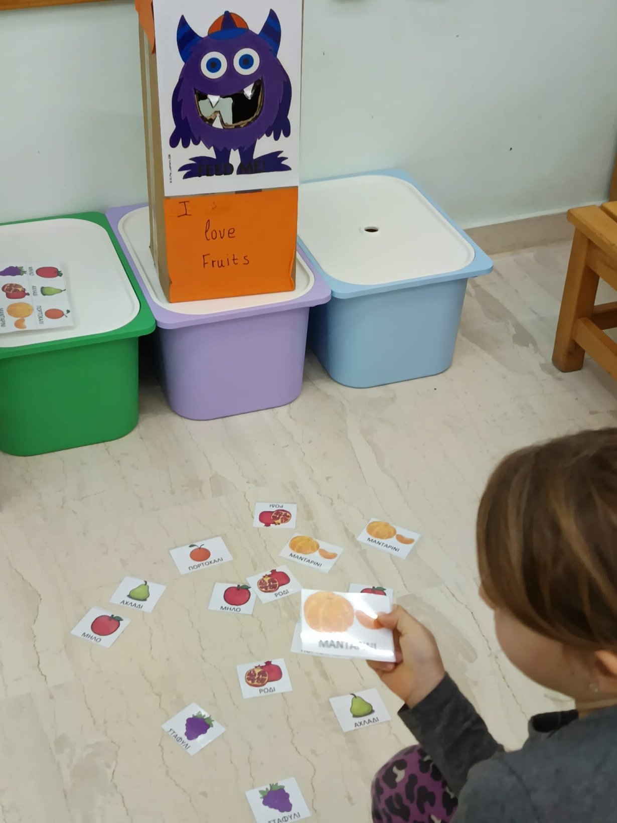 Το πιο αγαπημένο μέρος όμως ήταν όταν ήρθε η στιγμή να… ταΐσουμε το τερατάκι μας, που λατρεύει τα φθινοπωρινά φρούτα! Τα παιδιά έδειξαν μεγάλη χαρά καθώς «προσέφεραν» στο τερατάκι τα σωστά φρούτα, επαναλαμβάνοντας τις νέες λέξεις με ευκολία και γέλιο.