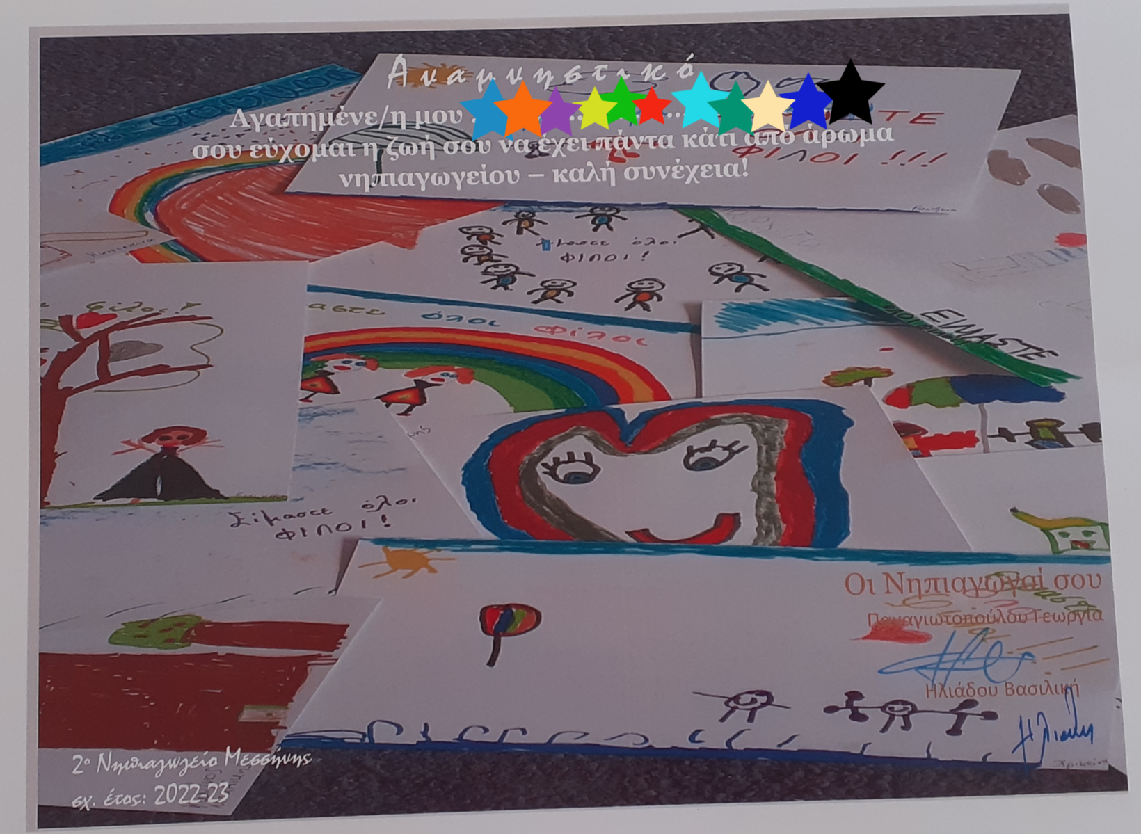 Τα Αναμνηστικά των τμημάτων του Νηπιαγωγείου μας, φτιαγμένα από έργα των παιδιών μας.