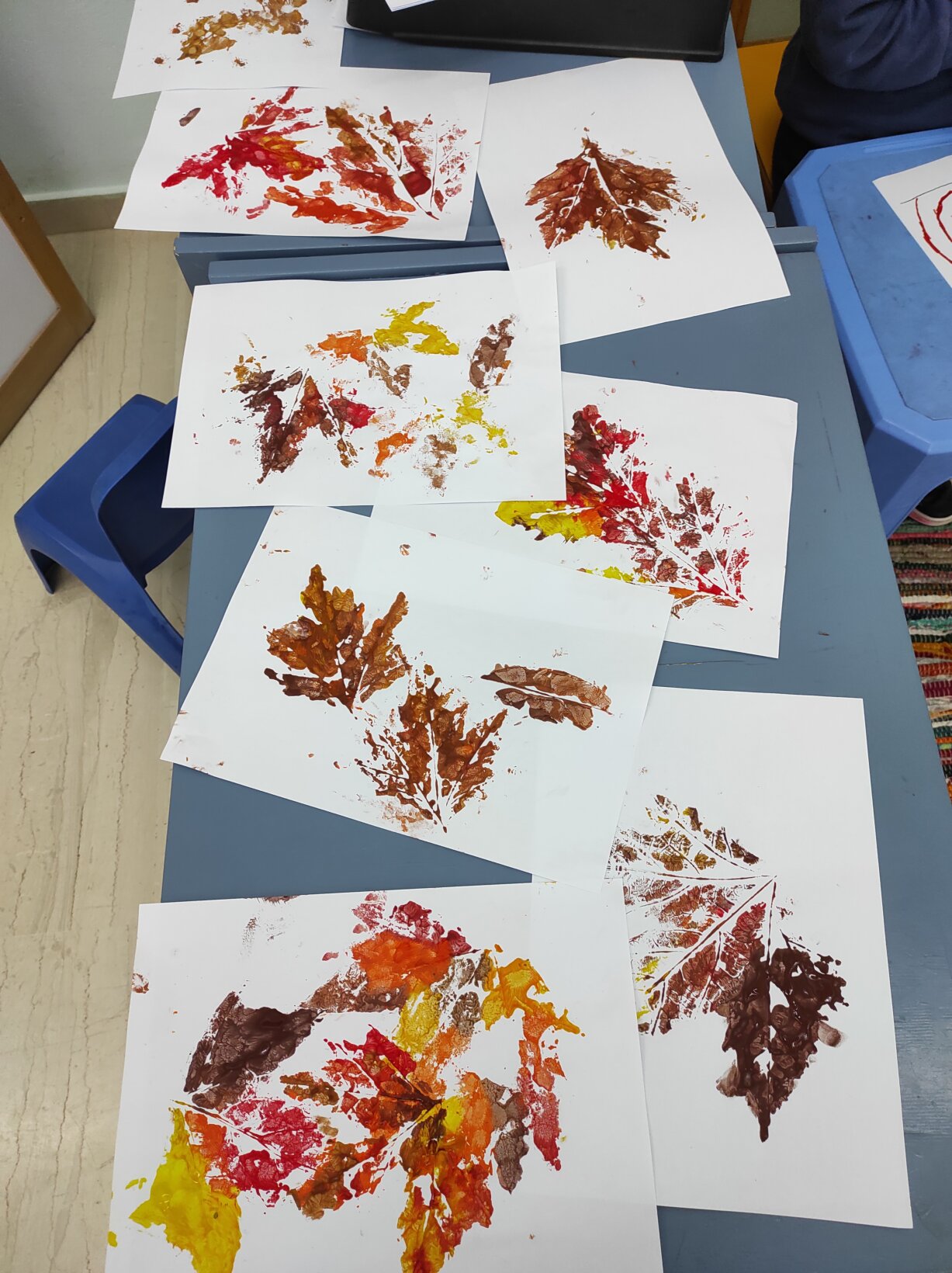 Έτσι λοιπόν οι μαθητές μας με βάση τα ενδιαφέροντά τους δημιούργησαν την περίοδο του Φθινοπώρου τυπώματα από φύλλα