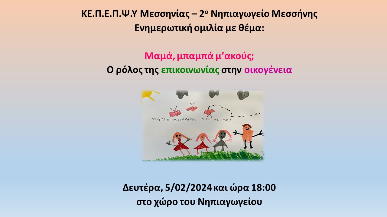 Η πρώτη από το εξειδικευμένο προσωπικό του ΚΕ.Π.Ε.Π.Ψ.Υ. Μεσσηνίας για την αξία της επικοινωνίας