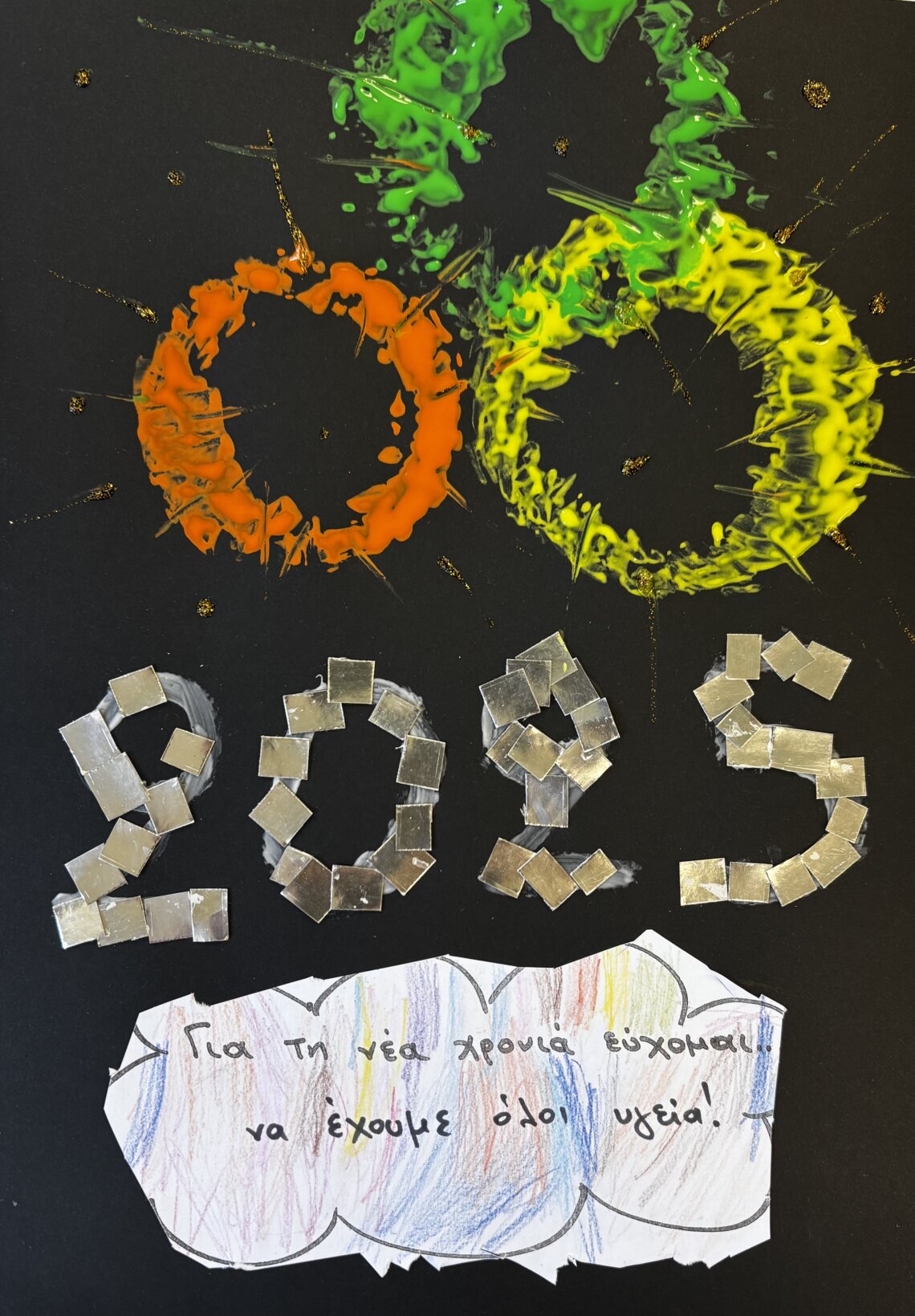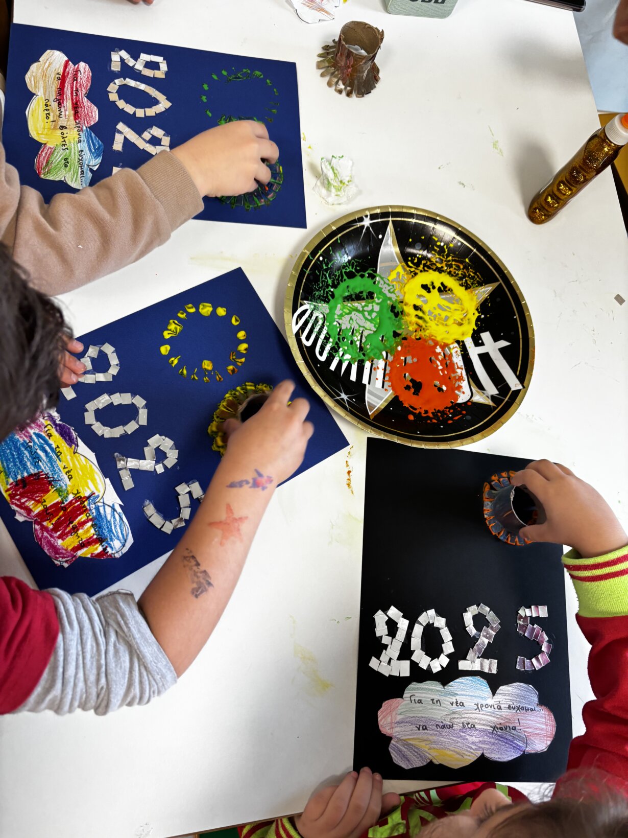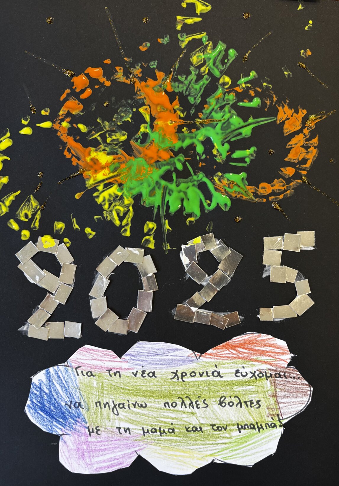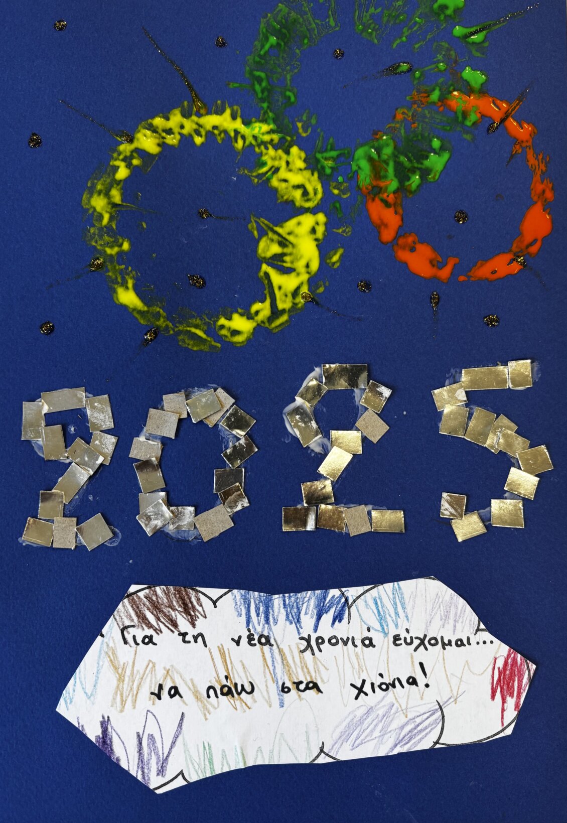 Στη συνέχεια, στολίσαμε το 2025 με χρώματα και φαντασία! Κάθε παιδί σχεδίασε και διακόσμησε τον δικό του αριθμό, γεμίζοντας τον με ευχές και όνειρα για τη χρονιά που μόλις ξεκίνησε. 🖌️🌟
