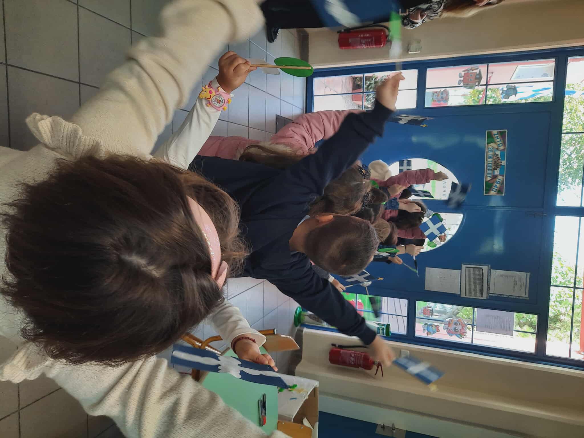 έμαθαν για την ελληνική σημαία, την αναγνώρισαν μέσα σε τόσες άλλες, ξεχώρισαν τις σημαίες των κρατών που ενεπλάκησαν στον πόλεμο του 1940, τη ζωγράφισαν και την κατασκεύασαν,
