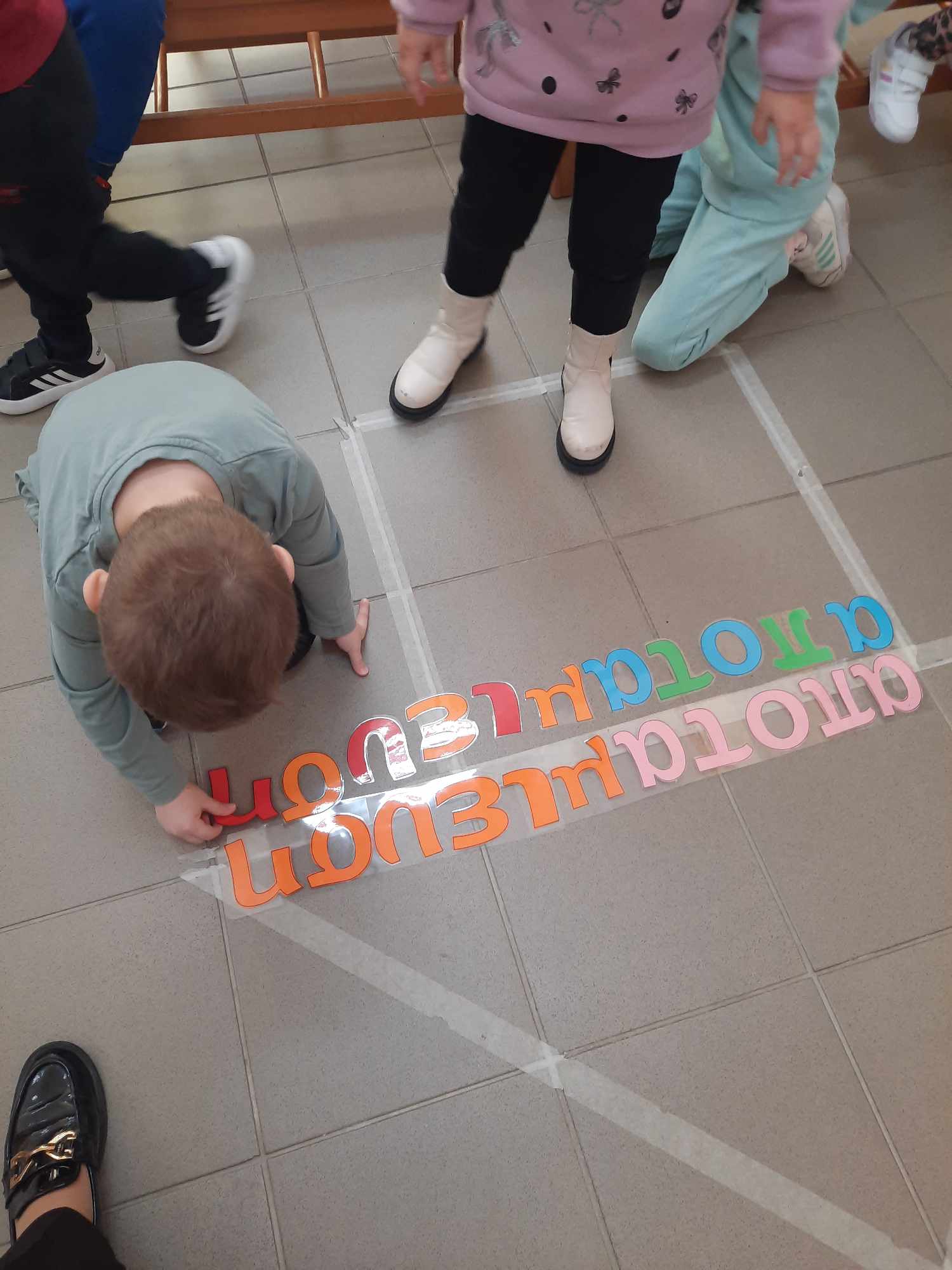 Παίξαμε σε ομάδες το επιτραπέζιο παιχνίδι “Ο κουμπαράς της καλοσύνης”, όπου έπρεπε σε 5 γύρους να ολοκληρώσουν 5 αποστολές (Να βοηθήσουν την ηλικιωμένη γειτόνισσά τους να καθαρίσει τον κήπο, να βοηθήσουν τον παππού τους να κουβαλήσει τα ψώνια του σούπερ μάρκετ, να φροντίσουν ένα αδέσποτο ζωάκι στη γειτονιά, να καθαρίσουν την αυλή του νηπιαγωγείου και τέλος να πάνε τα ρούχα και τα παιχνίδια τους στους ειδικούς κάδους ανακύκλωσης).