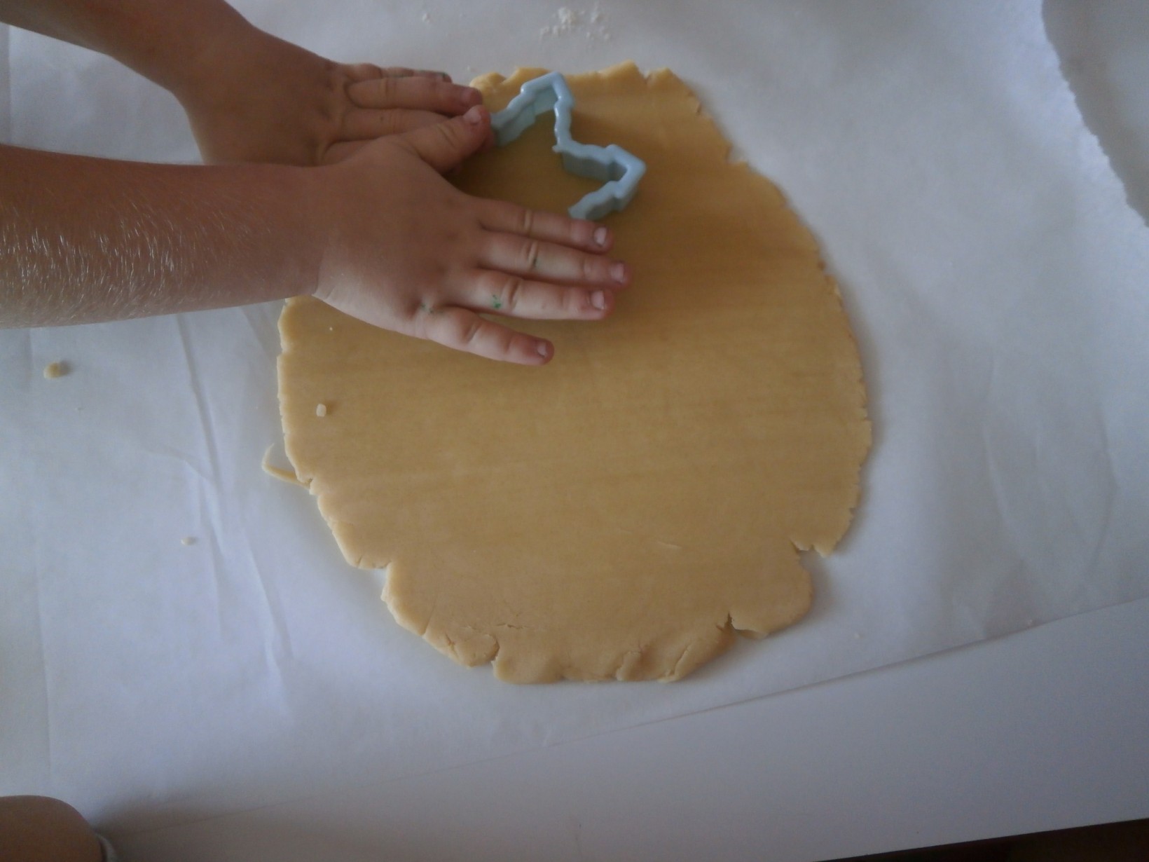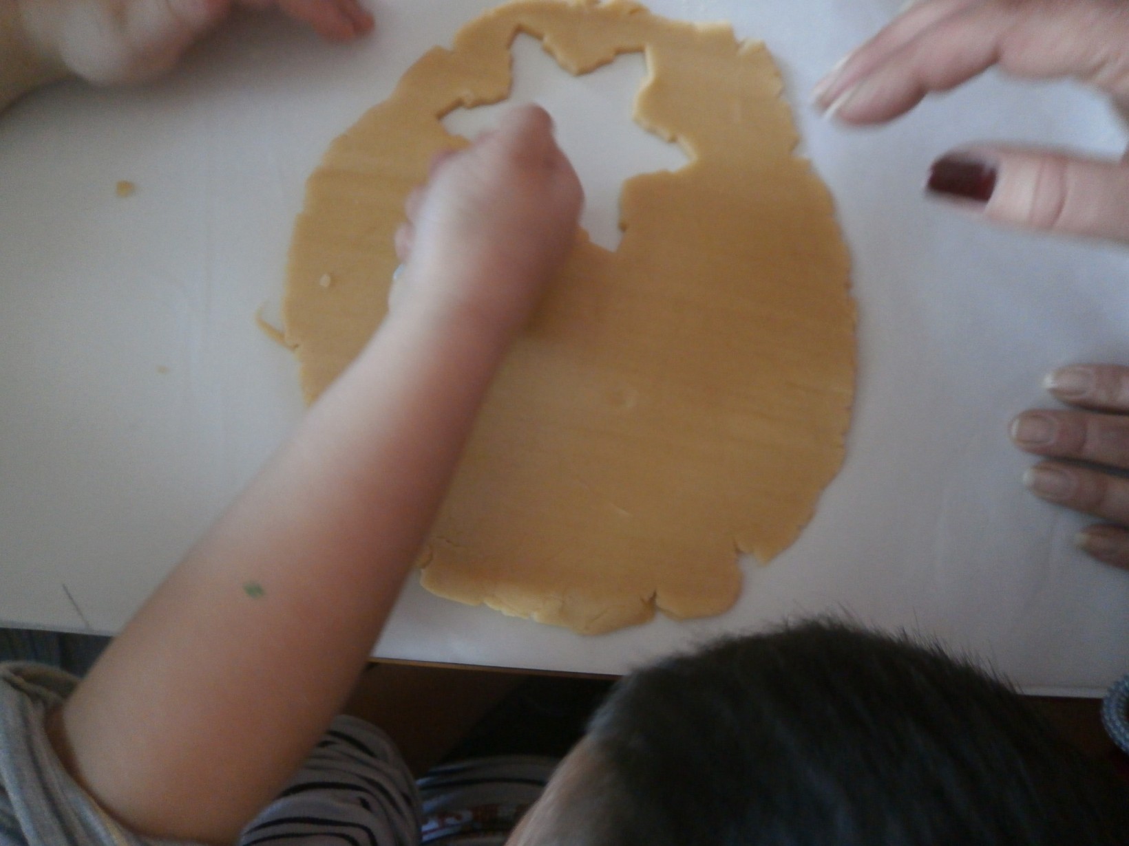 - Στο σχολείο μας ήρθε η μαμά της μαθήτριας μας της Τριανταφυλλιάς και μας έφερε ζύμη για να φτιάξουν τα παιδιά μπισκοτάκια με Χριστουγεννιάτικα κουπ.